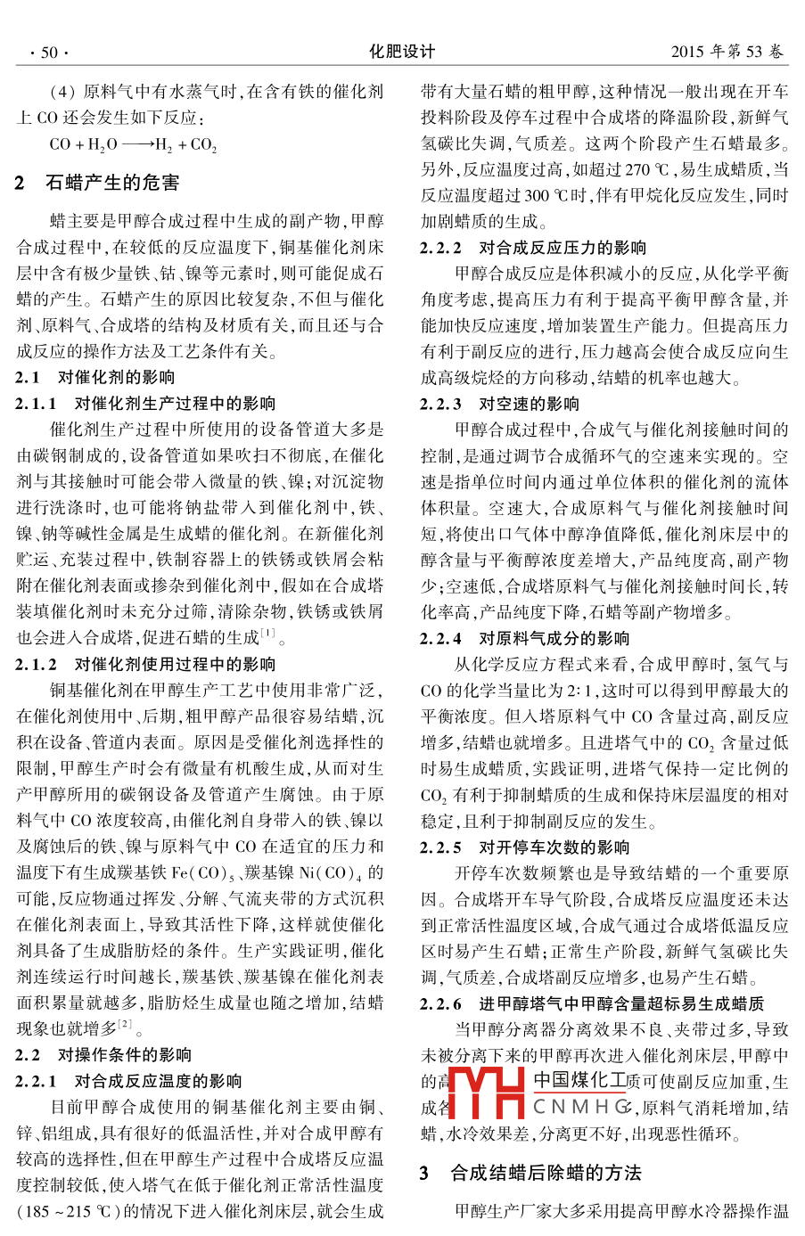 甲醇合成結(jié)蠟的原因及對(duì)策