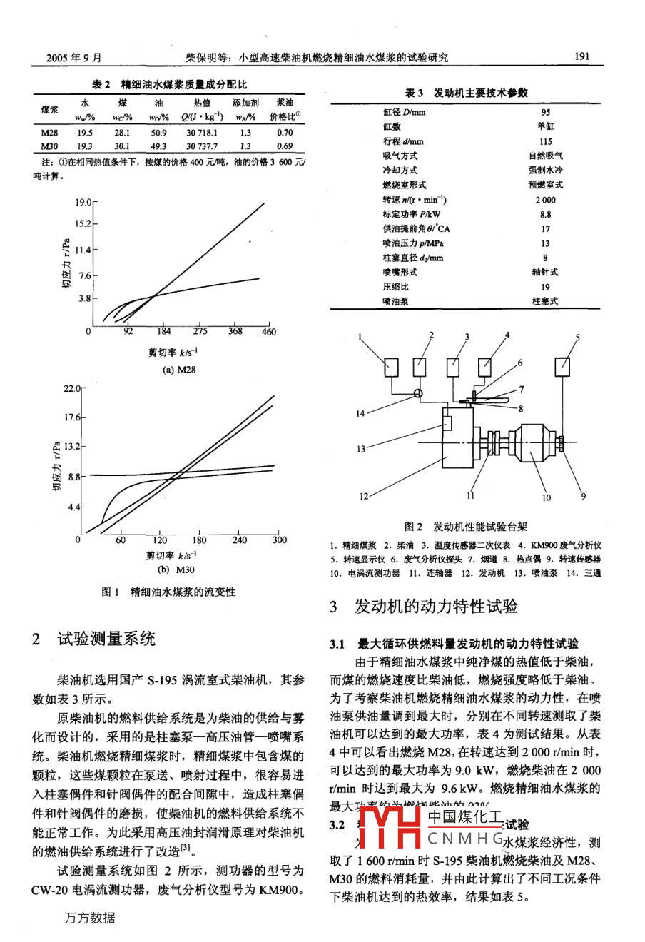 小型高速柴油機(jī)燃燒精細(xì)油水煤漿的試驗(yàn)研揪