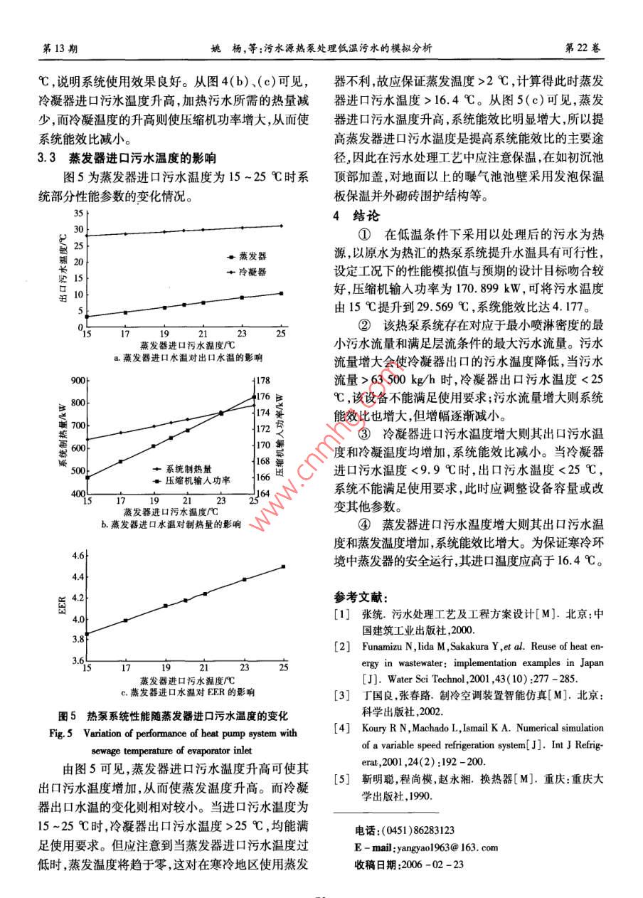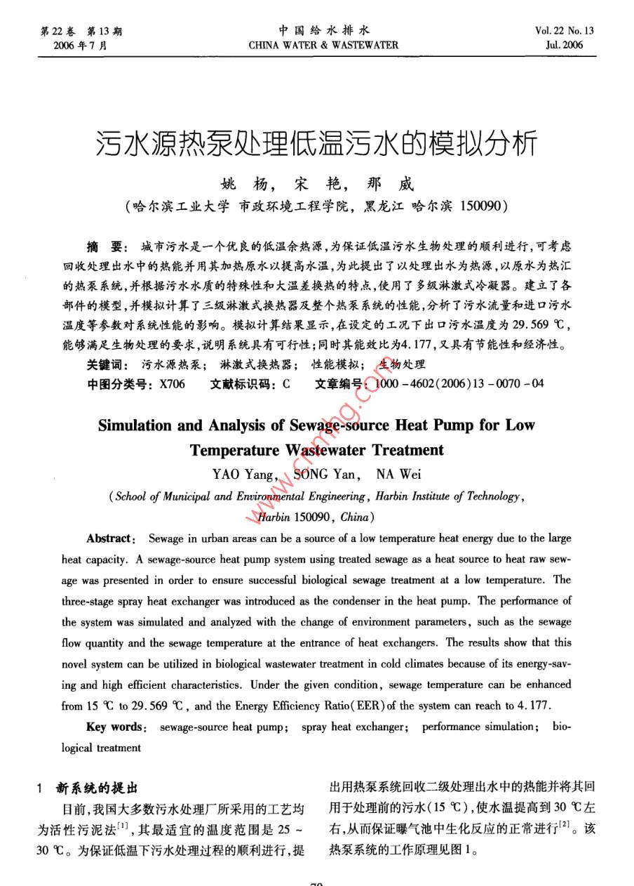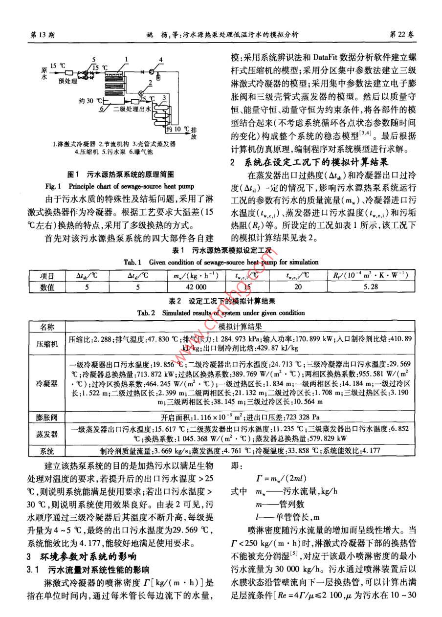 污水源熱泵處理低溫污水的模擬分析