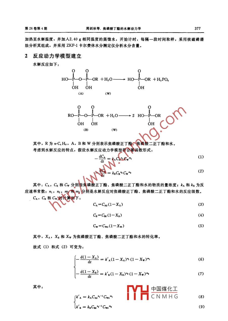 焦磷酸丁酯的水解動(dòng)力學(xué)