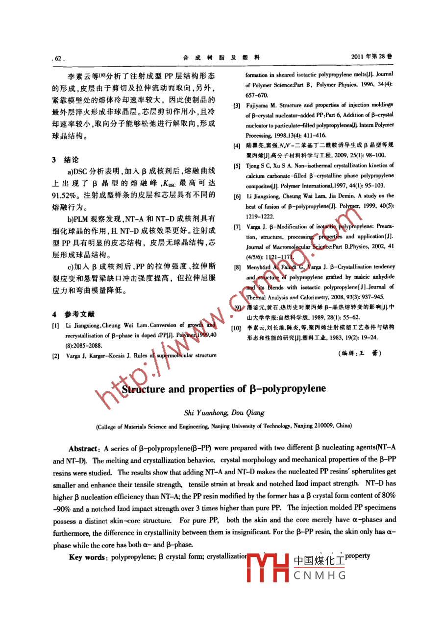 β晶型聚丙烯的結(jié)構(gòu)與性能