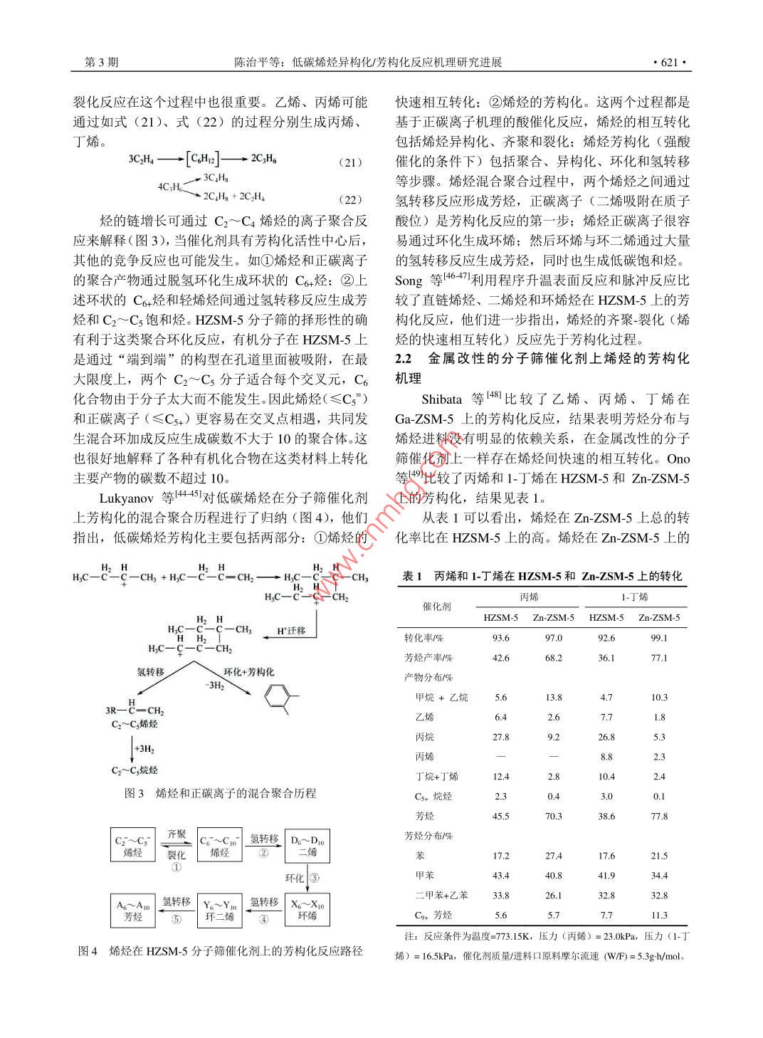 低碳烯烴異構(gòu)化/芳構(gòu)化反應(yīng)機(jī)理研究進(jìn)展