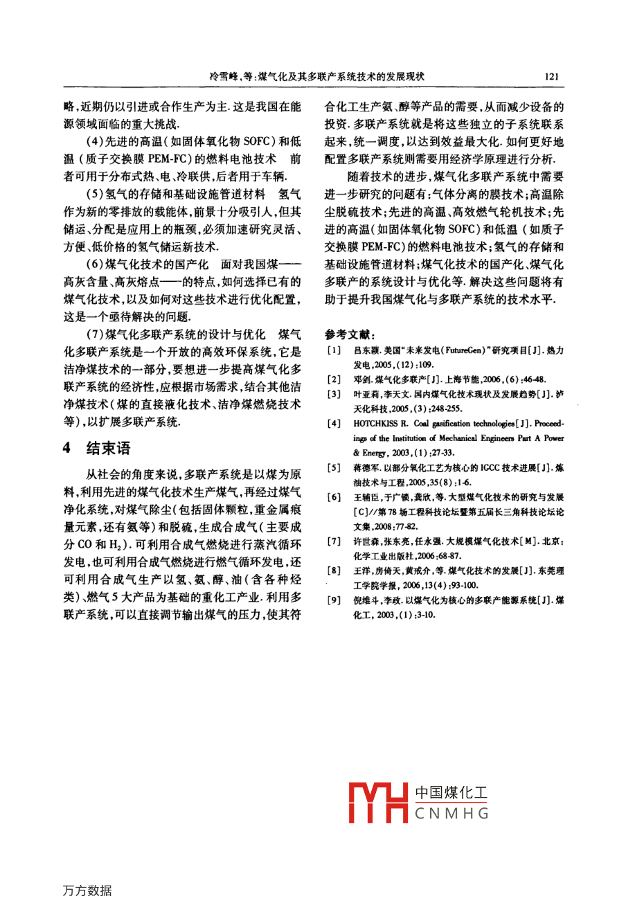 煤氣化及其多聯(lián)產(chǎn)系統(tǒng)技術(shù)的發(fā)展現(xiàn)狀