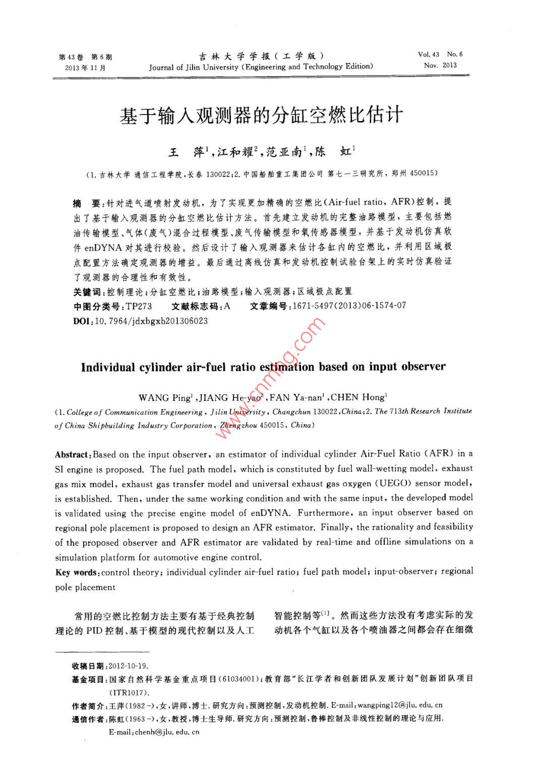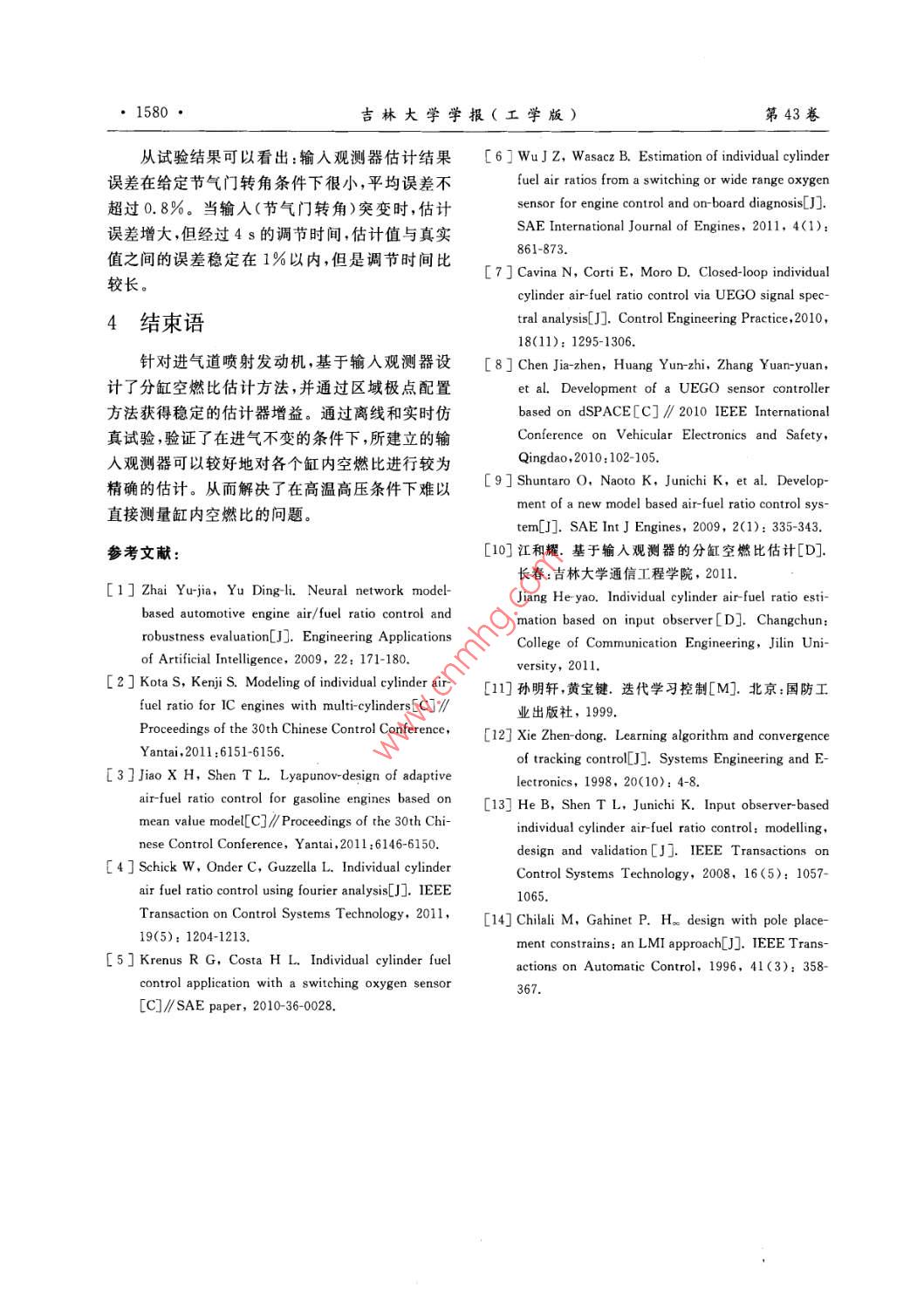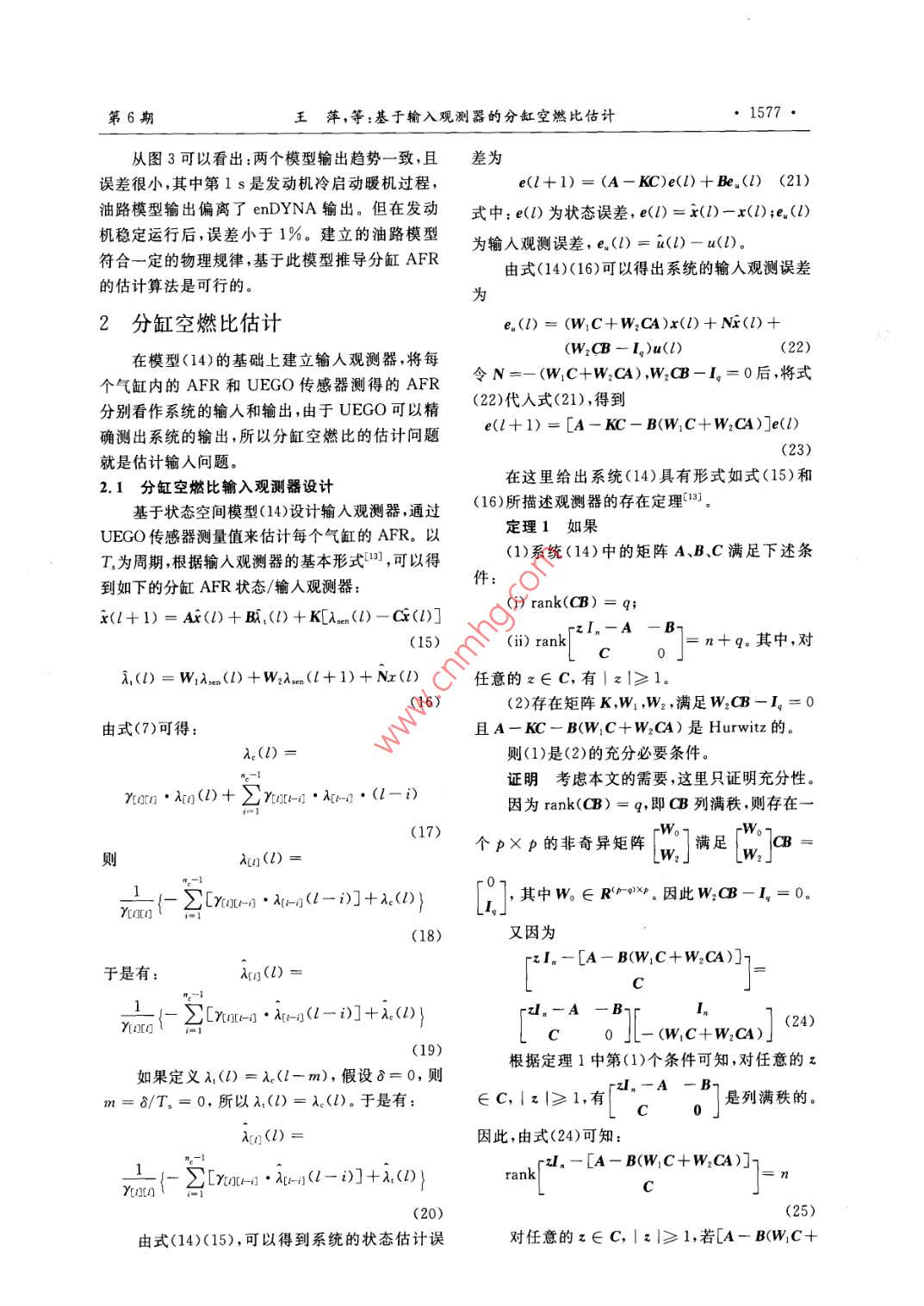 基于輸入觀測(cè)器的分缸空燃比估計(jì)