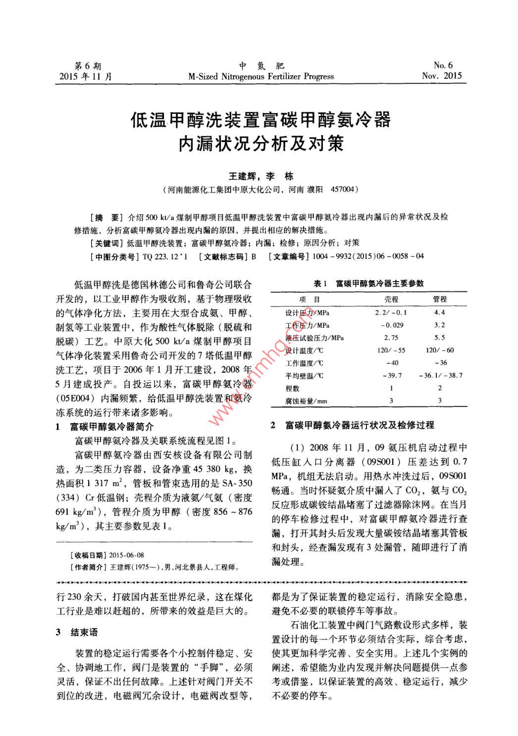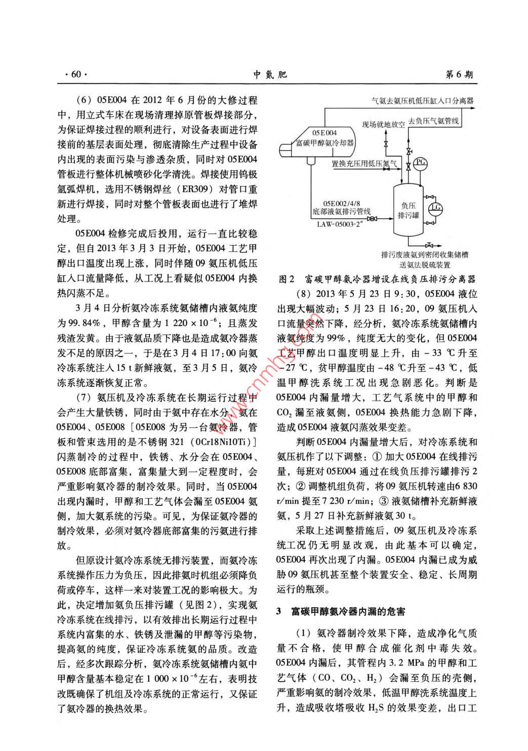 低溫甲醇洗裝置富碳甲醇氨冷器內漏狀況分析及對策