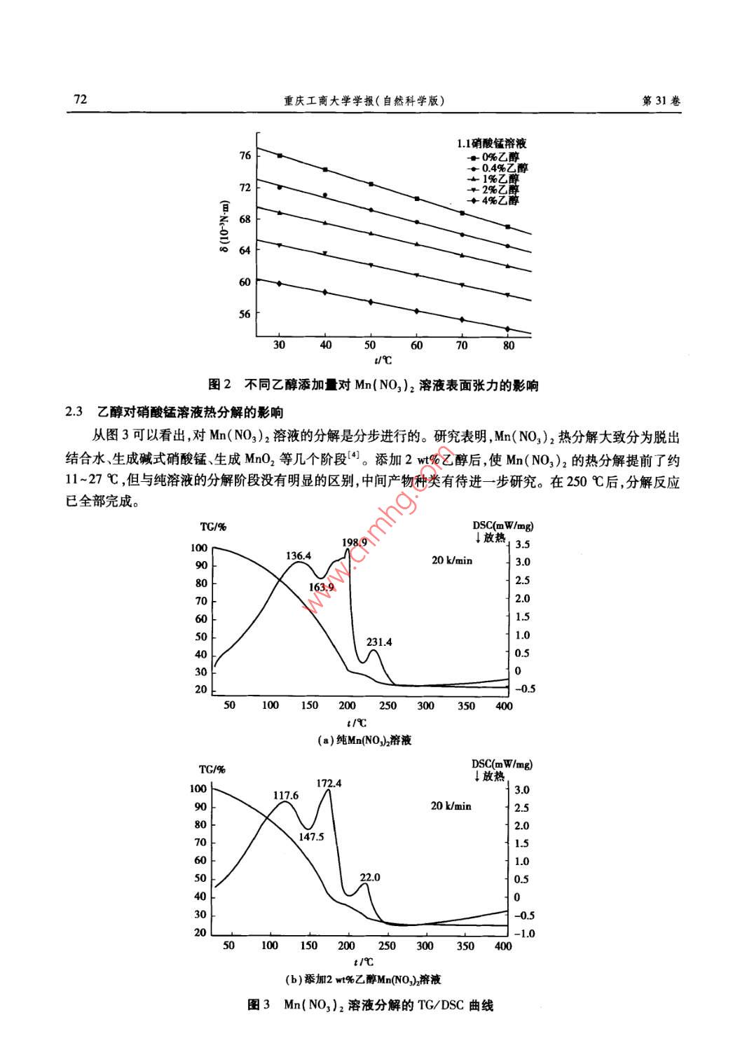 乙醇對硝酸錳熱分解的影響