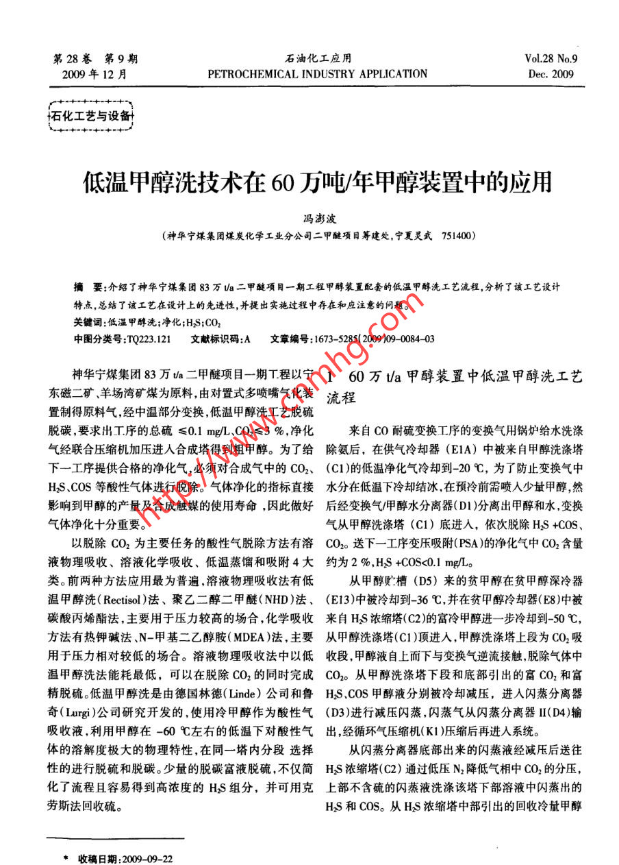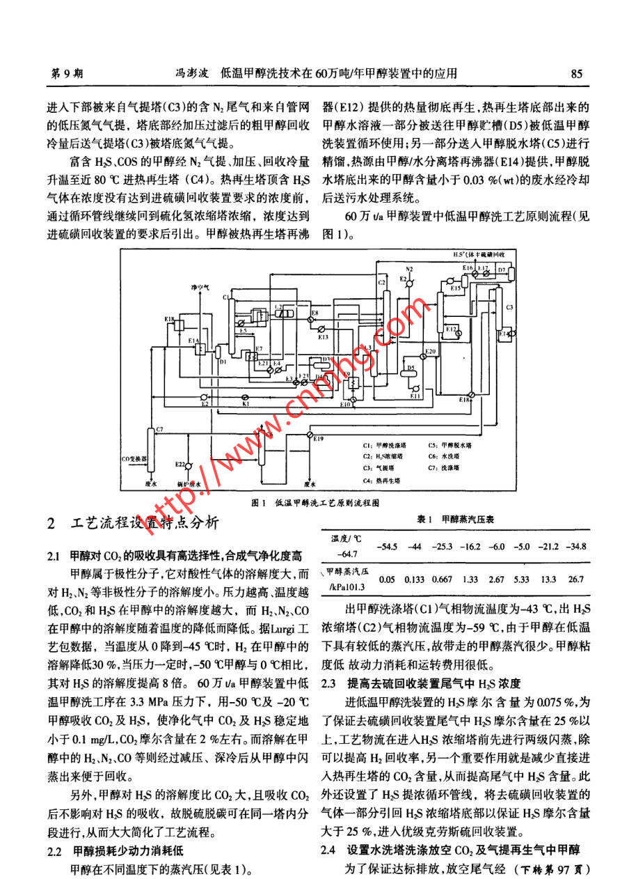 低溫甲醇洗技術在60萬噸/年甲醇裝置中的應用
