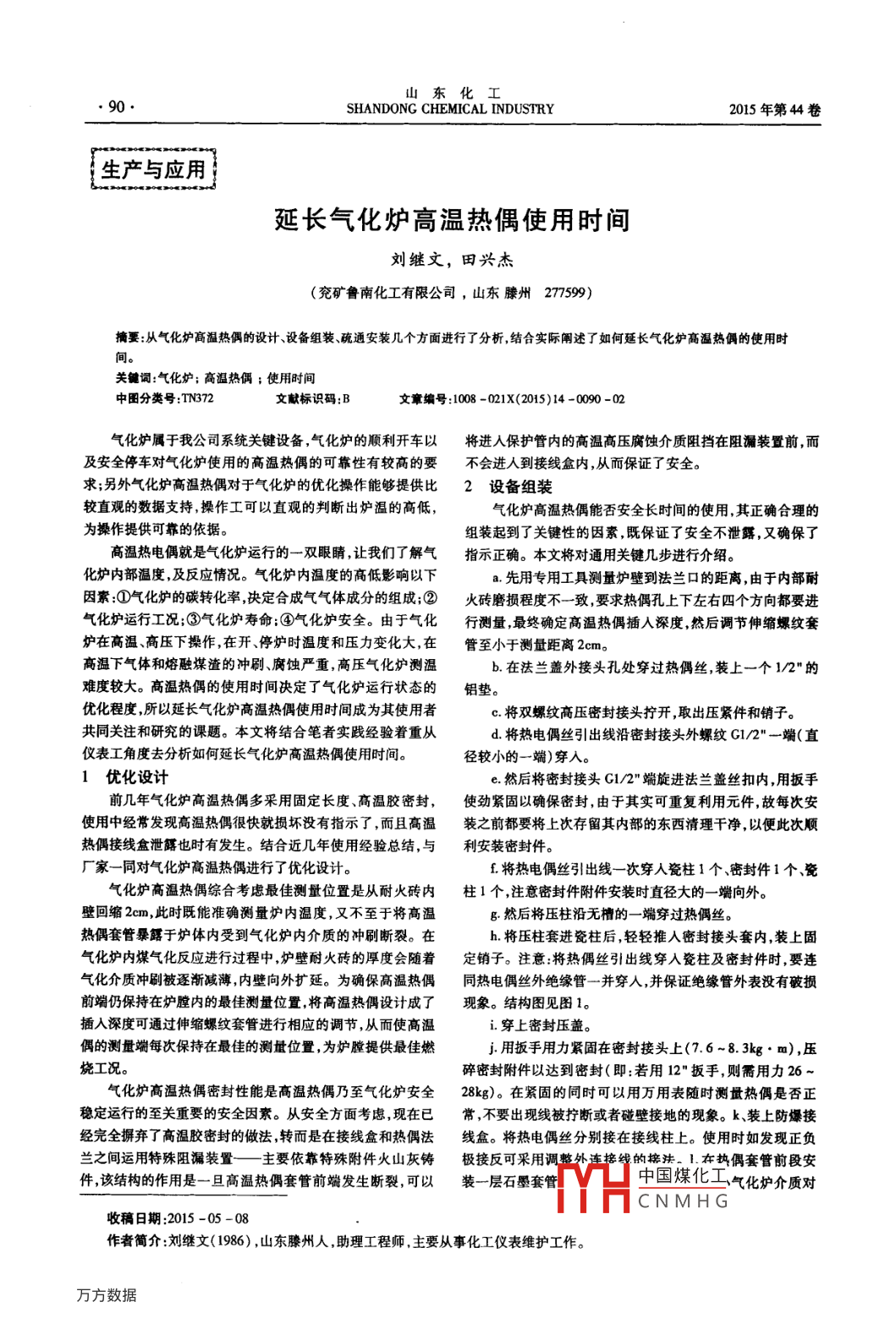 - 期刊名字:山東化工