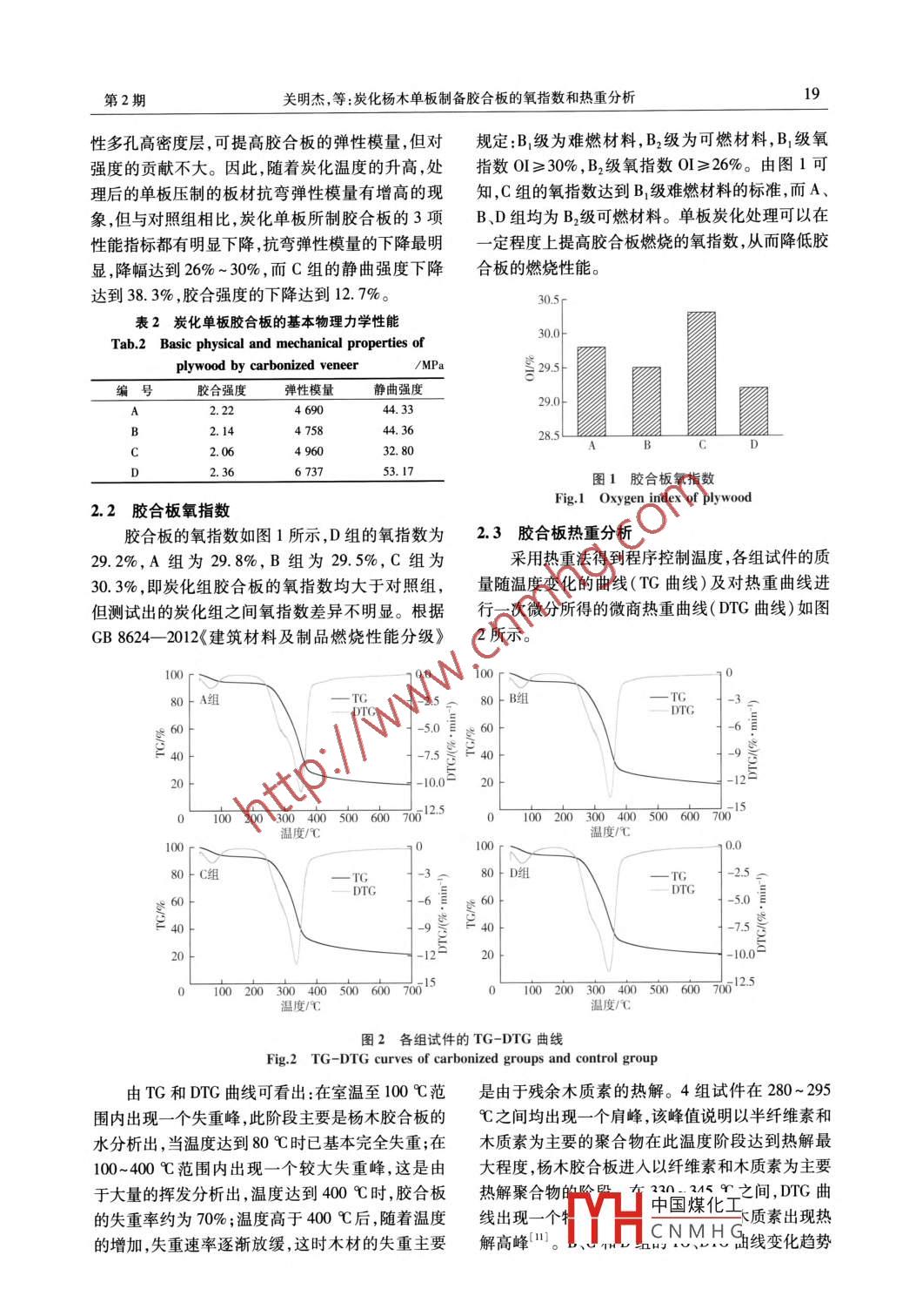 炭化楊木單板制備膠合板的氧指數(shù)和熱重分析