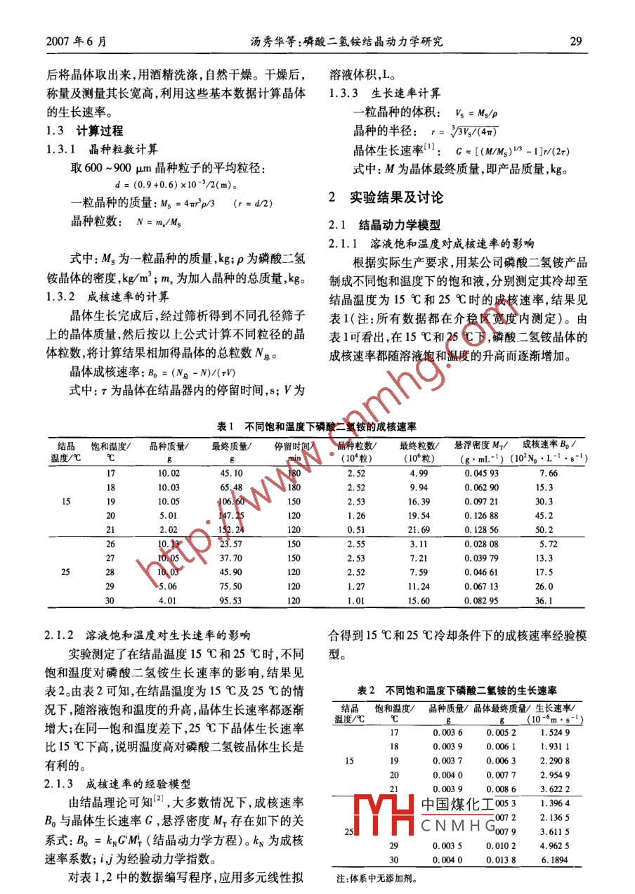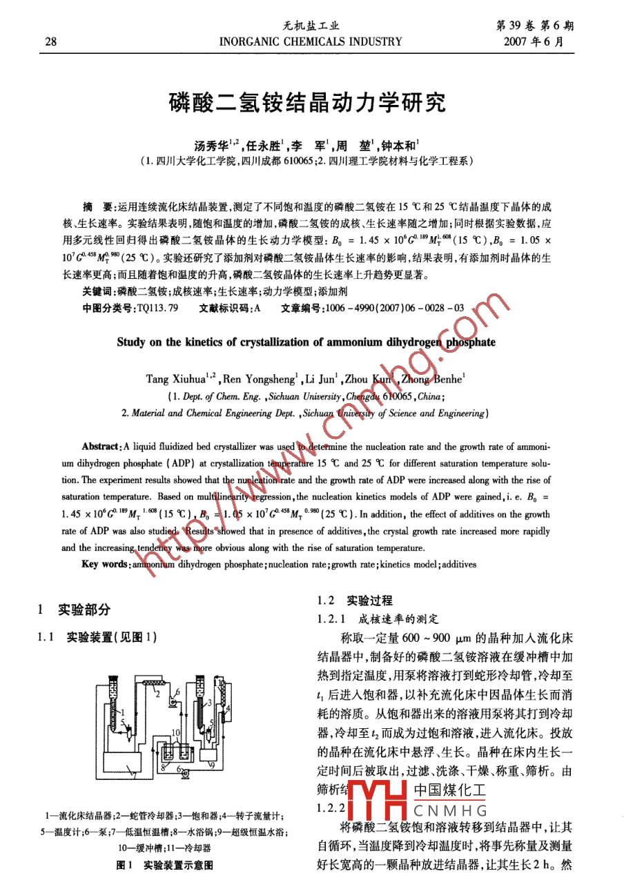 磷酸二氫銨結(jié)晶動力學(xué)研究