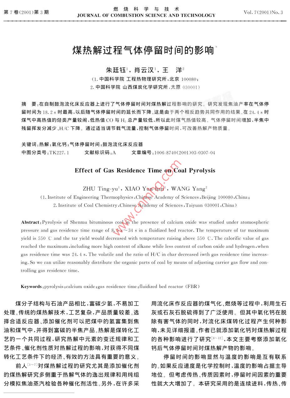 煤熱解過(guò)程氣體停留時(shí)間的影響