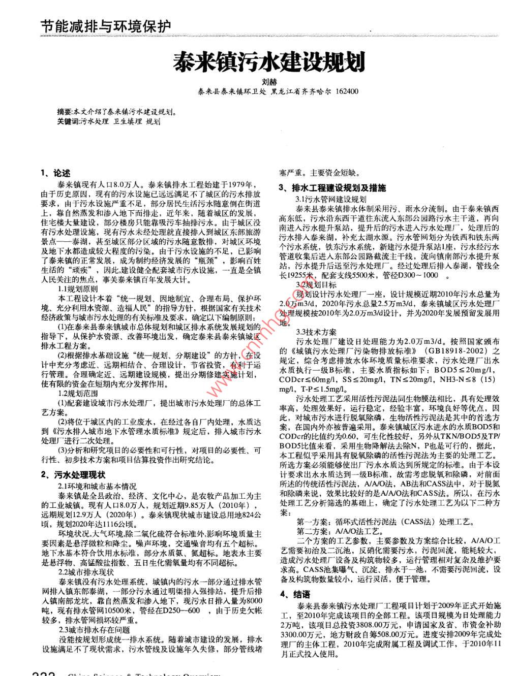 泰來鎮(zhèn)污水建設(shè)規(guī)劃