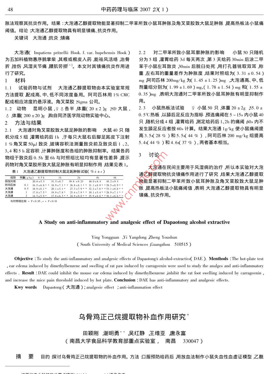 大泡通乙醇提取物鎮(zhèn)痛抗炎作用研究