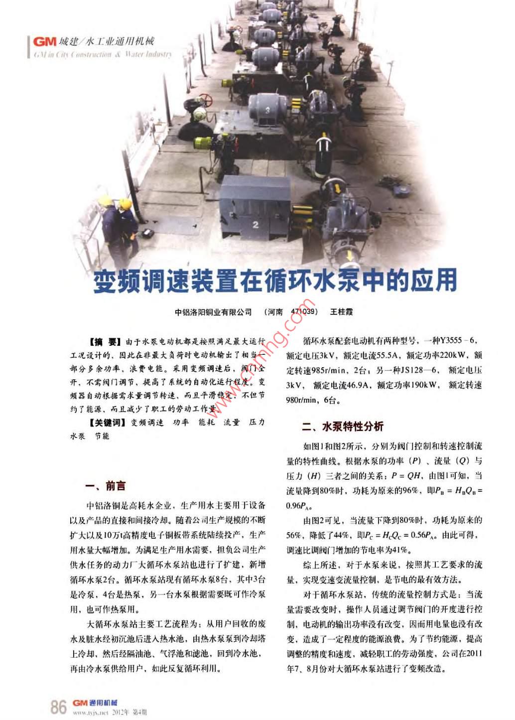 變頻調(diào)速裝置在循環(huán)水泵中的應(yīng)用