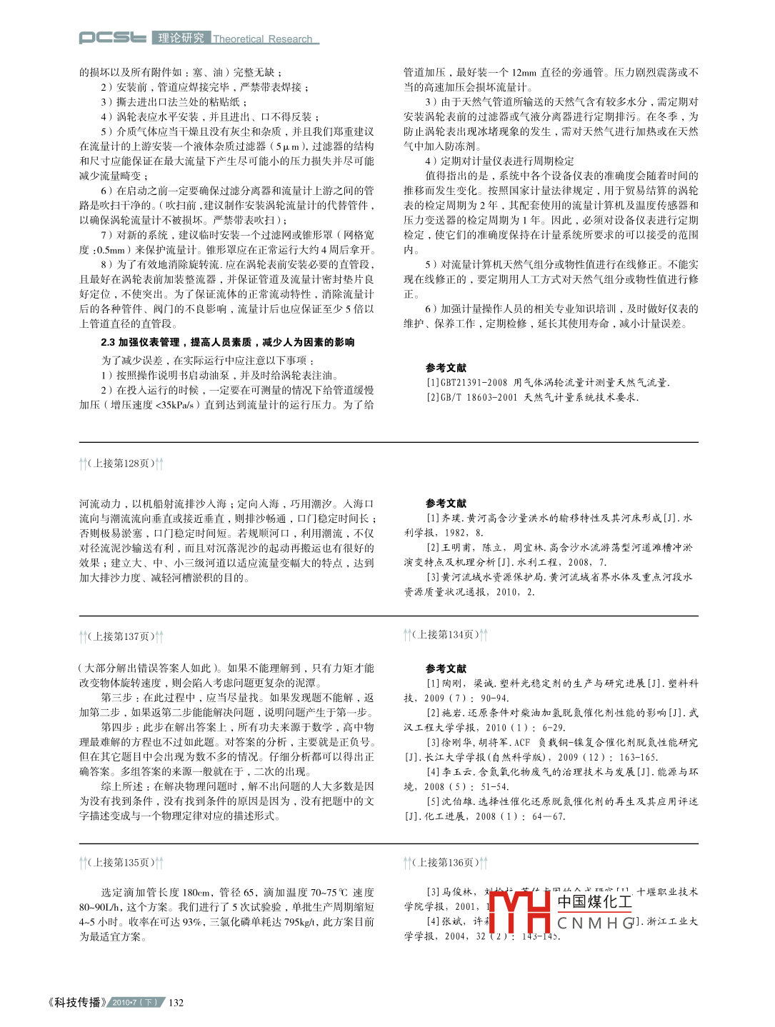 Theoretical Research理論研究口c淺談天然氣計量系統(tǒng)的誤差趙振中頂山燃氣有限責任公司,河南平頂山摘要本文以渦輪表計量系統(tǒng)為例,簡要論述了天然氣計量系統(tǒng)的組成和影響夭然氣計量系統(tǒng)誤差的因素以及提高的措施關(guān)鍵詞天然氣;計量系統(tǒng);誤差中圖分類號TH814文獻標識碼A文章編號1674-6708(2010)23-0131-00引言對照上表,我們的計量系統(tǒng)中,溫度、壓力的準確度取決一個完整的天然氣計量系統(tǒng)通常由流量計、溫度變送器、壓于EK或溫度、壓力變送器;密度、發(fā)熱量的準確度取決于色譜力變送器、在線色譜儀和流量計算機(或體積修正儀)組成。其或成份分析儀;工作條件下體積流量的準確度取決于渦輪流量計工作原理為:由流量傳感器(如渦輪流量計、超聲波流量計等)測(應(yīng)注意區(qū)別量程范圍)。壓縮因子的準確度取決于算法:AGA8量天然氣的工況流量,溫度變送器測量天然氣的工況溫度,壓力92DC、 SGERG-88(AGA8-92GC)的準確度為0.1%;AGA-NX-19變送器測量天然氣的工況壓力,在線色譜儀測量天然氣的組分的準確度為0.5%。綜合上述數(shù)據(jù),對照上表,即可確定由EK或流量計算機接收流量計、溫度變送器、壓力變送器、在線色譜儀者F組成的計量系統(tǒng)的系統(tǒng)準確度了輸出信號,計算天然氣在規(guī)定的標準狀態(tài)下的體積流量(標況流12渦輪表不正確安裝引起的誤差量)。計量系統(tǒng)的每一種儀表的準確度直接影響著系統(tǒng)的準確度或通過渦輪表的燃氣須有均勻的流速分布才能將速度轉(zhuǎn)換成準誤差。此外,儀表的不正確安裝,尤其是流量計以及在實際運行確的體積計量,否則將引起誤差。主要有3種干擾會引起計量系中由于工作人員對儀表的操作和維護不當也都會對系統(tǒng)產(chǎn)生誤差統(tǒng)渦輪表的誤差。系統(tǒng)誤差的因素1)不均勻的流速分布稱為噴流,通常是由不正確的安裝方法11計量儀表或計量表上游有凸出物所造成的。渦輪表上游的管道內(nèi)存在噴流情形時,轉(zhuǎn)子即與撞擊其上的最高流速發(fā)生作用,轉(zhuǎn)速增加,產(chǎn)眾所周知,目前我國在天然氣貿(mào)易中,均采用標準參比條件生正誤差下的體積(標況體積)作為貿(mào)易單位,而標況體積是通過理想氣2)氣流在切線方向存在速度時,稱為旋流。此種干擾通常也體方程式和壓縮因子的修正計算得到的。是由不正確的安裝和計量表上游的障礙物造成的。旋流視其旋轉(zhuǎn)方向不同使計量表產(chǎn)生正的或負的誤差3)脈動流是氣流的壓力波,通常是由渦輪表附近的減壓器其中下標s表示 standard標準,下標a表示 actual工況往復式壓縮機造或由工作管道的振動,特別是共振造成,也可由Pa、Ta由現(xiàn)場的壓力變送器和RTD測得;流量控制器的周期性動作和調(diào)節(jié)器的往復開關(guān)及流體管道裝置Ps、Ts可在流量計算機內(nèi)設(shè)定(Ps=101.325 KPa ' Ts=20閥門或旋轉(zhuǎn)的機械裝置等分流造成的脈動流通常使渦輪表產(chǎn)生正誤差。參數(shù)測量計量系統(tǒng)配套儀表準確度級(10)B級(20)C級(30)13人為因素影響產(chǎn)生的誤差度0.5℃1)由于儀表的選型不當,比如所選渦輪表的量程過大或過小壓力都會造成計量系統(tǒng)的誤差2)違反操作規(guī)程或不按規(guī)定要求對儀表進行正常的維護,都密度1.0%將會造成系統(tǒng)的誤差。如每次啟用渦輪時,如果動作粗魯,不按壓縮因子0.5%0.5%操作規(guī)程開啟閥門,都將會造成系統(tǒng)的誤差,嚴重時會損壞計量發(fā)熱量0.5%1.0%儀表。帶油泵的渦輪表,如果不按要求對渦輪進行及時注油,也工作條件下將會引起系統(tǒng)的誤差0.75%1.0%體積流量1.5%3)沒有對流量計算機內(nèi)天然氣組分或物性值實現(xiàn)在線修正或譜分析儀分析天然氣組分,將組分信息傳輸?shù)搅髁坑嬎闳斯ば拚龣C內(nèi),流量計算機根據(jù)AGA8計算壓縮系數(shù)Zs,Za。4)沒有按國家規(guī)定對儀表進行定期檢定。在上述計算過程中,輸入量為工況體積、壓力、溫度和氣體2減少計量系統(tǒng)誤差的措施特征值。這些輸入值都是帶有誤差的。將這些帶誤差的輸入值進21計量儀表方面行運算,得到的結(jié)果也是帶有誤差的。由于這一運算過程相當復雜)渦輪表的選型要合理,并滿足實際運行需要,二次儀表的因此作為輸出結(jié)果的標況體積的誤差在數(shù)學上是難以計算的雖然標況體積的誤差難以計算,但是在工程上卻可以估計出計量模型應(yīng)符合SY/6143-1996的要求;它的誤差限。我國的國家標準《GB18603-2001天然氣計量系統(tǒng)2)為了增強上下游計量儀表數(shù)據(jù)比對的可行性和準確度,減技術(shù)要求》給出了這樣的規(guī)定少誤差的發(fā)生,應(yīng)和上游選用同一種類型的計量儀表該標準表達的意義為:為構(gòu)成A級(1.0)計量系統(tǒng),溫度儀3)為了使系中國煤化工壓力傳感器表的準確度應(yīng)當優(yōu)于0.5℃,壓力儀表的準確度應(yīng)當優(yōu)于0.2%等。定時裝置等輔助設(shè)TH需精度1-2級。CNMHG換言之,當溫度儀表的準確度優(yōu)于0.5℃,壓力儀表的準確度優(yōu)于2.2減少渦輪0.2%等時,該計量系統(tǒng)的準確度優(yōu)于1.01)在安裝之前,應(yīng)當檢查渦輪流量計以確信沒有由運輸引起13120107()《科技傳播》的損壞以及所有附件如:塞、油)完整無缺管道加壓,最好裝一個12mm直徑的旁通管。壓力劇烈
