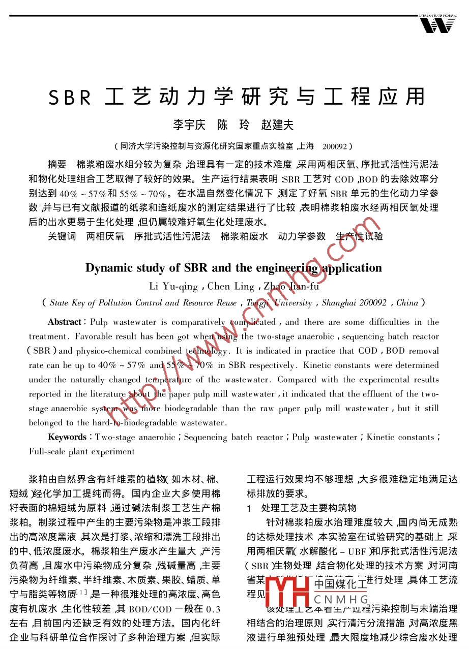SBR工藝動(dòng)力學(xué)研究與工程應(yīng)用