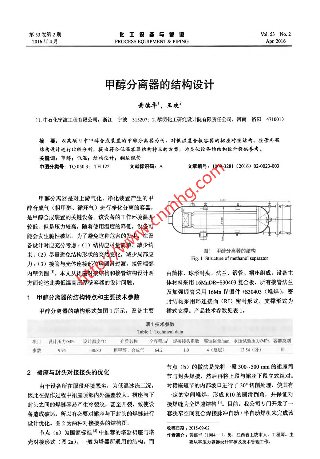 甲醇分離器的結(jié)構(gòu)設(shè)計(jì)