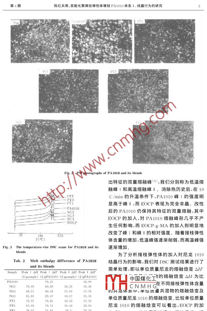 官能化聚烯烴彈性體增韌PA1010體系Ⅱ.結晶行為的研究