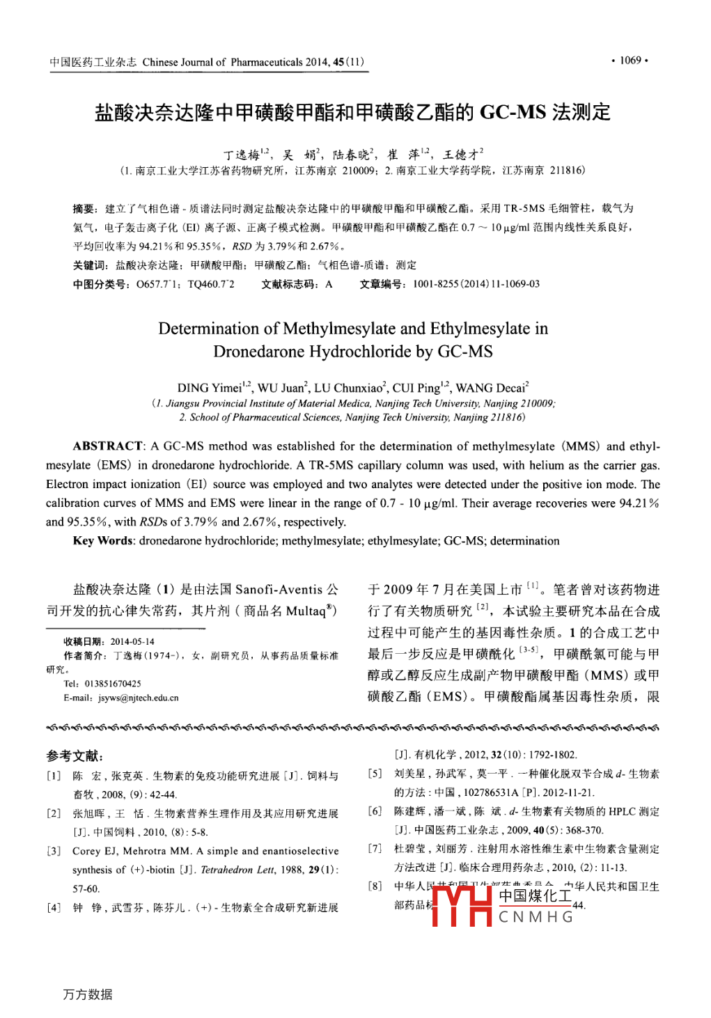 - 期刊名字:中國醫(yī)藥工業(yè)雜志