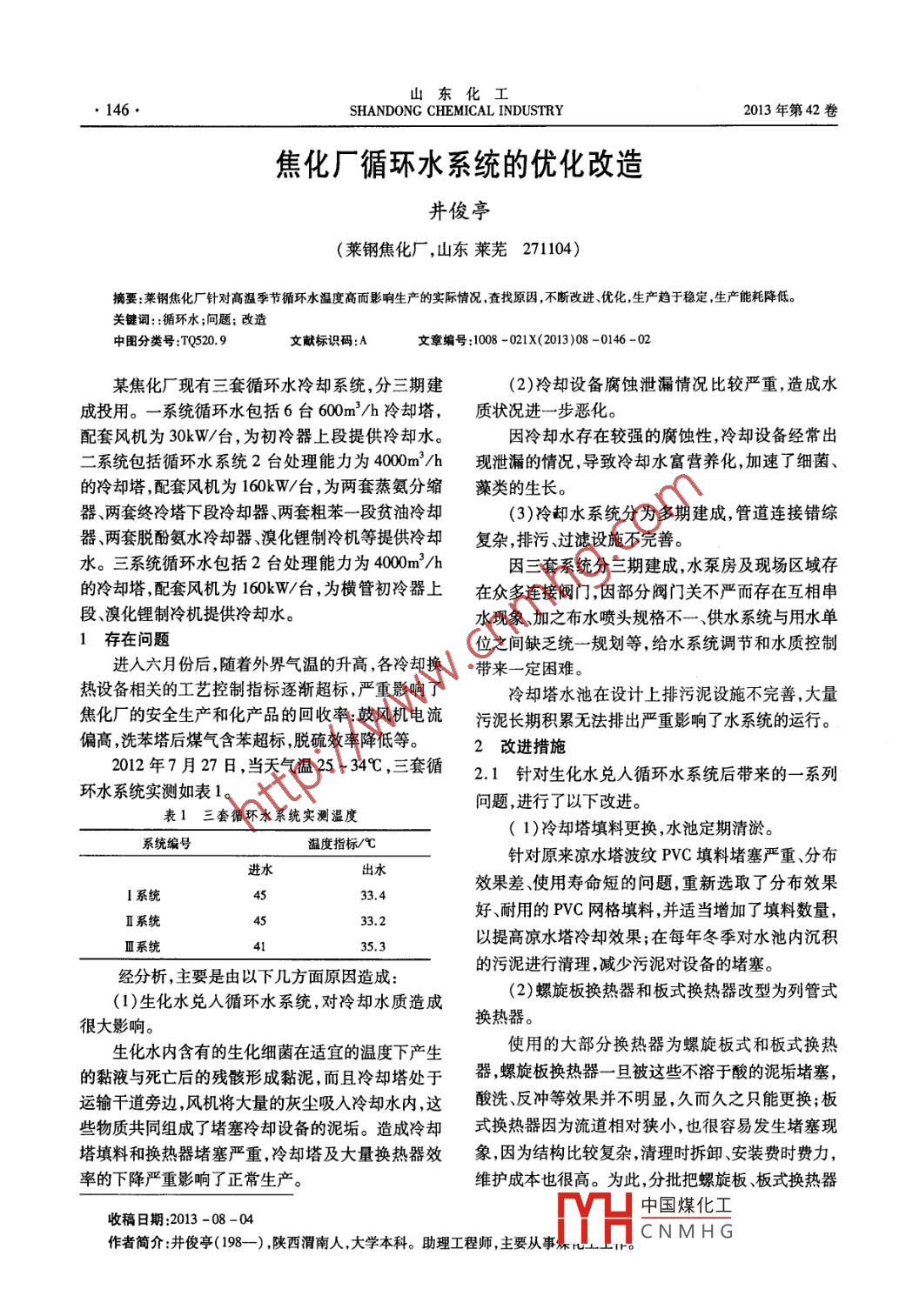 焦化廠循環(huán)水系統(tǒng)的優(yōu)化改造