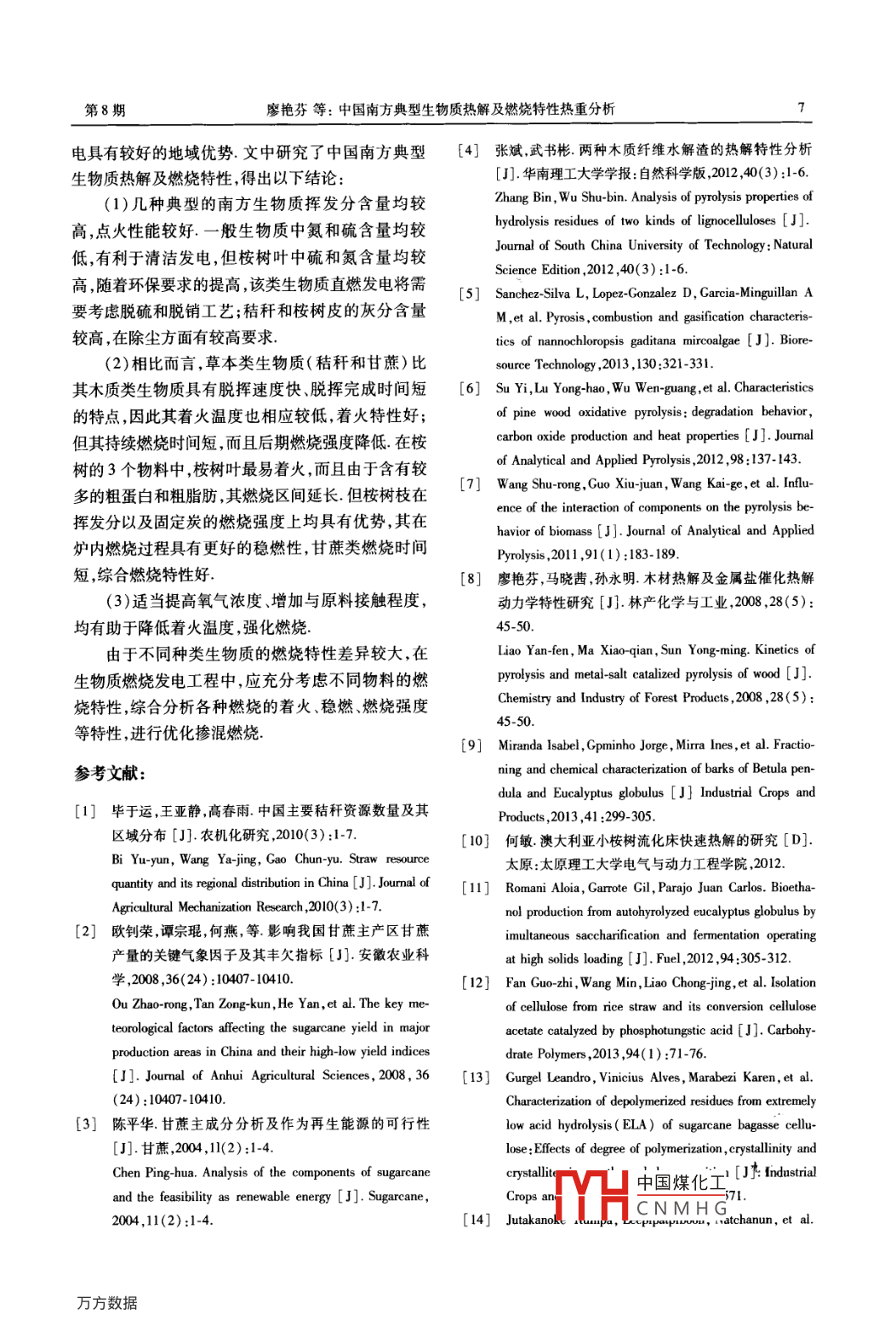中國(guó)南方典型生物質(zhì)熱解及燃燒特性熱重分析