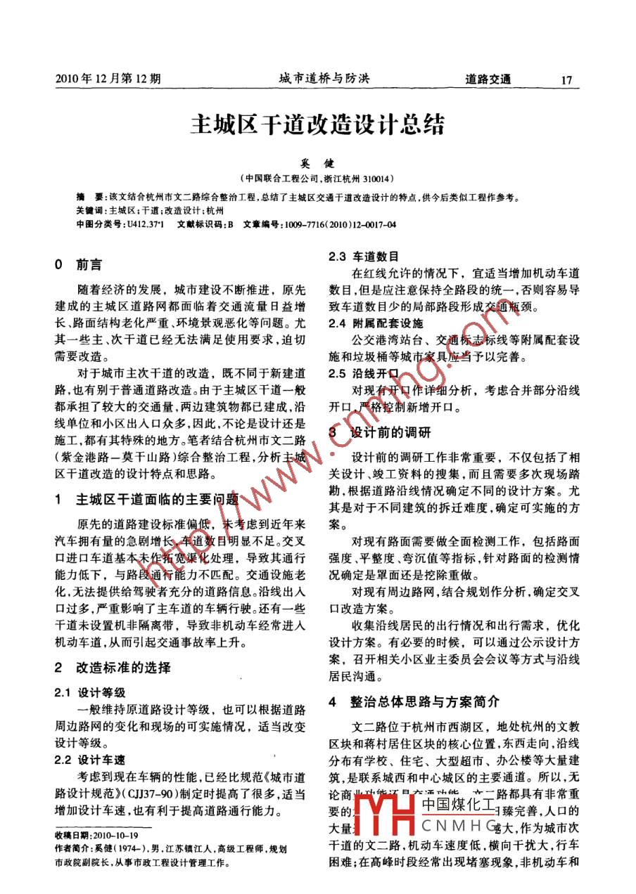 主城區(qū)干道改造設(shè)計(jì)總結(jié)