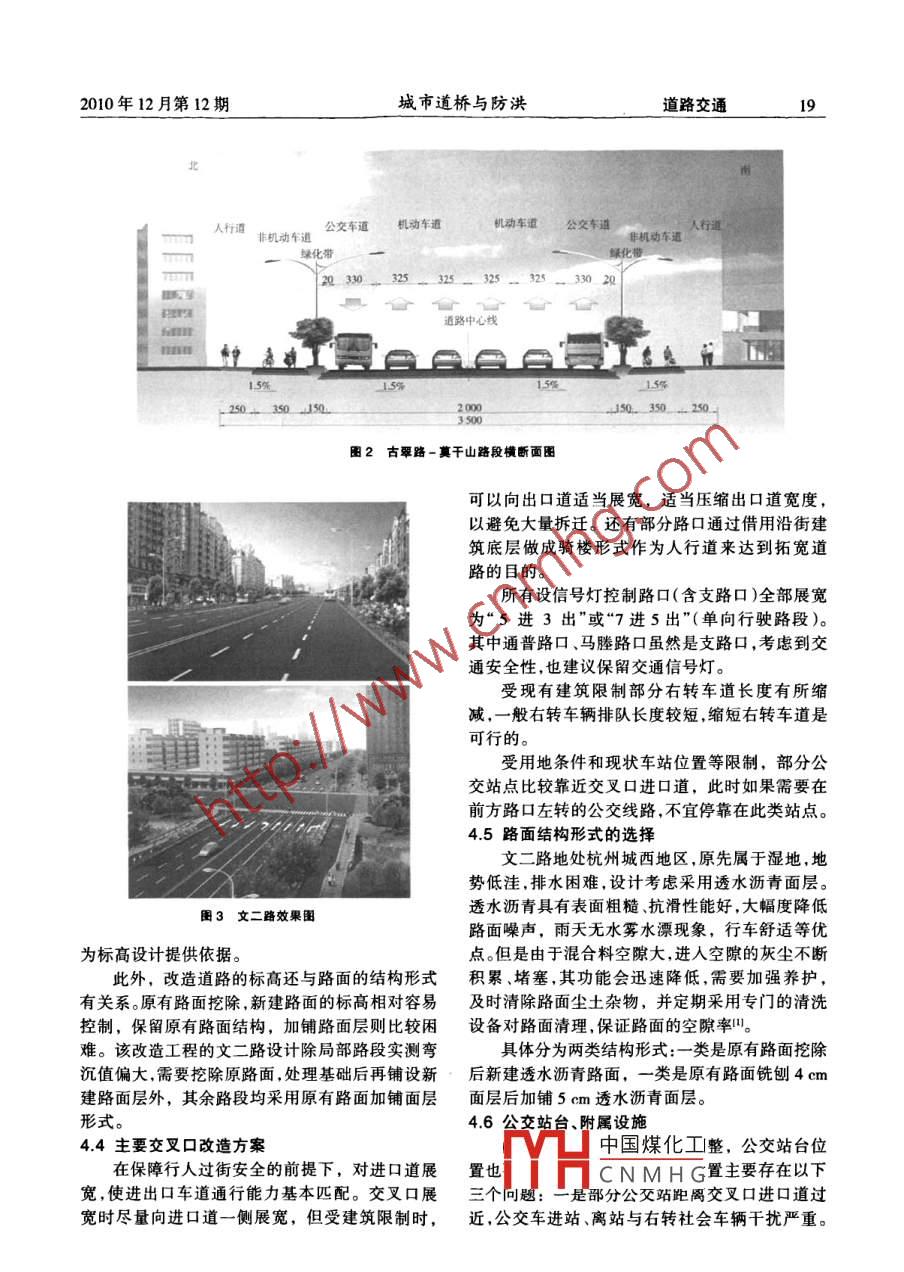 2010年12月第12期城市道橋與防洪道路交通主城區(qū)千道改造設(shè)計(jì)總結(jié)奚健(中國聯(lián)合工程公司,浙江杭州30014)摘要:該文結(jié)合杭州市文二路綜合整治工程,總結(jié)了主城區(qū)交通干道改造設(shè)計(jì)的特點(diǎn)供今后類似工程作參考。關(guān)鍵詞:主城區(qū);干道;改造設(shè)計(jì);杭州中圖分類號:U412371文獻(xiàn)標(biāo)識碼:B文章編號:100-7716(2010)12-0017-04前言23車道數(shù)目在紅線允許的情況下,宜適當(dāng)增加機(jī)動車道隨著經(jīng)濟(jì)的發(fā)展,城市建設(shè)不斷推進(jìn),原先數(shù)目,但是應(yīng)注意保持全路段的統(tǒng)一,否則容易導(dǎo)建成的主城區(qū)道路網(wǎng)都面臨著交通流量日益增致車道數(shù)目少的局部路段形成交通瓶頸長、路面結(jié)構(gòu)老化嚴(yán)重、環(huán)境景觀惡化等問題。尤24附屬配套設(shè)施其一些主、次干道已經(jīng)無法滿足使用要求,迫切公交港灣站臺、交通標(biāo)志標(biāo)線等附屬配套設(shè)需要改造。施和垃圾桶等城市家具應(yīng)當(dāng)予以完善。對于城市主次干道的改造,既不同于新建道25沿線開口路,也有別于普通道路改造。由于主城區(qū)干道一般對現(xiàn)有開口作詳細(xì)分析,考慮合并部分沿線都承擔(dān)了較大的交通量,兩邊建筑物都已建成,沿開口,嚴(yán)格控制新增開口線單位和小區(qū)出入口眾多,因此,不論是設(shè)計(jì)還是施工都有其特殊的地方筆者結(jié)合杭州市文二路3設(shè)計(jì)前的調(diào)研(紫金港路一莫干山路)綜合整治工程,分析主城設(shè)計(jì)前的調(diào)研工作非常重要,不僅包括了相區(qū)干道改造的設(shè)計(jì)特點(diǎn)和思路關(guān)設(shè)計(jì)、竣工資料的搜集,而且需要多次現(xiàn)場踏主城區(qū)干道面臨的主要問題勘,根據(jù)道路沿線情況確定不同的設(shè)計(jì)方案。尤其是對于不同建筑的拆遷難度,確定可實(shí)施的方原先的道路建設(shè)標(biāo)準(zhǔn)偏低,未考慮到近年來案。汽車擁有量的急劇增長,車道數(shù)目明顯不足。交叉對現(xiàn)有路面需要做全面檢測工作,包括路面口進(jìn)口車道基本未作拓寬渠化處理,導(dǎo)致其通行強(qiáng)度、平整度、彎沉值等指標(biāo),針對路面的檢測情能力低下,與路段通行能力不匹配。交通設(shè)施老況確定是罩面還是挖除重做?;?無法提供給駕駛者充分的道路信息。沿線出入對現(xiàn)有周邊路網(wǎng),結(jié)合規(guī)劃作分析,確定交叉口過多,嚴(yán)重影響了主車道的車輛行駛。還有一些口改造方案。千道未設(shè)置機(jī)非隔離帶,導(dǎo)致非機(jī)動車經(jīng)常進(jìn)入收集沿線居民的出行情況和出行需求,優(yōu)化機(jī)動車道,從而引起交通事故率上升。設(shè)計(jì)方案。有必要的時候,可以通過公示設(shè)計(jì)方2改造標(biāo)準(zhǔn)的選擇案,召開相關(guān)小區(qū)業(yè)主委員會會議等方式與沿線居民溝通。21設(shè)計(jì)等級一般維持原道路設(shè)計(jì)等級,也可以根據(jù)道蹤4整治總體思路與方案簡介周邊路網(wǎng)的變化和現(xiàn)場的可實(shí)施情況,適當(dāng)改變文二路位于杭州市西湖區(qū),地處杭州的文教設(shè)計(jì)等級。區(qū)塊和蔣村居住區(qū)塊的核心位置,東西走向,沿線22設(shè)計(jì)車速分布有學(xué)校、住宅、大型超市、辦公樓等大量建考慮到現(xiàn)在車輛的性能已經(jīng)比規(guī)范《城市道筑,是聯(lián)系城西和中心城區(qū)的主要通道。所以,無路設(shè)計(jì)規(guī)范》(CJ37-90)制定時提高了很多,適當(dāng)論商路都具有非常重增加設(shè)計(jì)車速,也有利于提高道路通行能力要的中國煤化工臻完善,人口的收稿日期:200-10-19大量CNMH(g大,作為城市次作者簡介:奚健(1974-),男,江蘇鎮(zhèn)江人,高級工程師,規(guī)劃干道的文二路,機(jī)動車速度低,橫向干擾大,行車市政院副院長,從事市政工程設(shè)計(jì)管理工作。困難;在高峰時段經(jīng)常出現(xiàn)堵塞現(xiàn)象,非機(jī)動車和道路交通城市道橋與防洪2010年12月第12期行人穿越馬路隨意,安全保障性較差。另外,沿線動車。的各類相關(guān)管線,也開始出現(xiàn)飽和運(yùn)行的情況,運(yùn)為了體現(xiàn)公交優(yōu)先的原則,雙向都設(shè)置公交行壓力大,需要擴(kuò)容或改進(jìn)。專用車道。該整治工程范圍全長約6km,現(xiàn)狀交通組織考慮到機(jī)動車流的主要構(gòu)成是小型車和公交分為兩段,其中紫金港路一古翠路段為雙向4車車,公交車有專用車道,因此標(biāo)準(zhǔn)路段的車道寬度道,一幅板形式,古翠路一莫干山路段由西向東單取3.5m就足夠了。向3~4車道,另外有一條反向的公交專用車道車道數(shù)目在原有基礎(chǔ)上增加2條,變?yōu)?車路面整體情況尚可,根據(jù)檢測報告,只有鄰近莫干道,紅線寬度視情況拓寬1.5~5m。優(yōu)化后的標(biāo)山路口的400m左右路段的彎沉值超標(biāo)。但是公準(zhǔn)橫斷面形式為交站臺、交叉口、橋梁接坡等處路面有不同程度的(1)紫金港路-古翠路段為雙向6車道,機(jī)動破壞,如車轍、擁包等。車道寬21m,機(jī)非分隔帶寬05m,非機(jī)動車道寬文二路的沿線為建成區(qū),道路改擴(kuò)建限制條4m,人行道寬25m,該斷面方案現(xiàn)狀行道樹位件多,施工困難。因此需要全面考慮設(shè)計(jì)和施工方于非機(jī)動車道中間