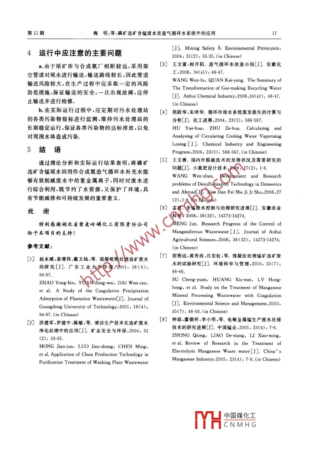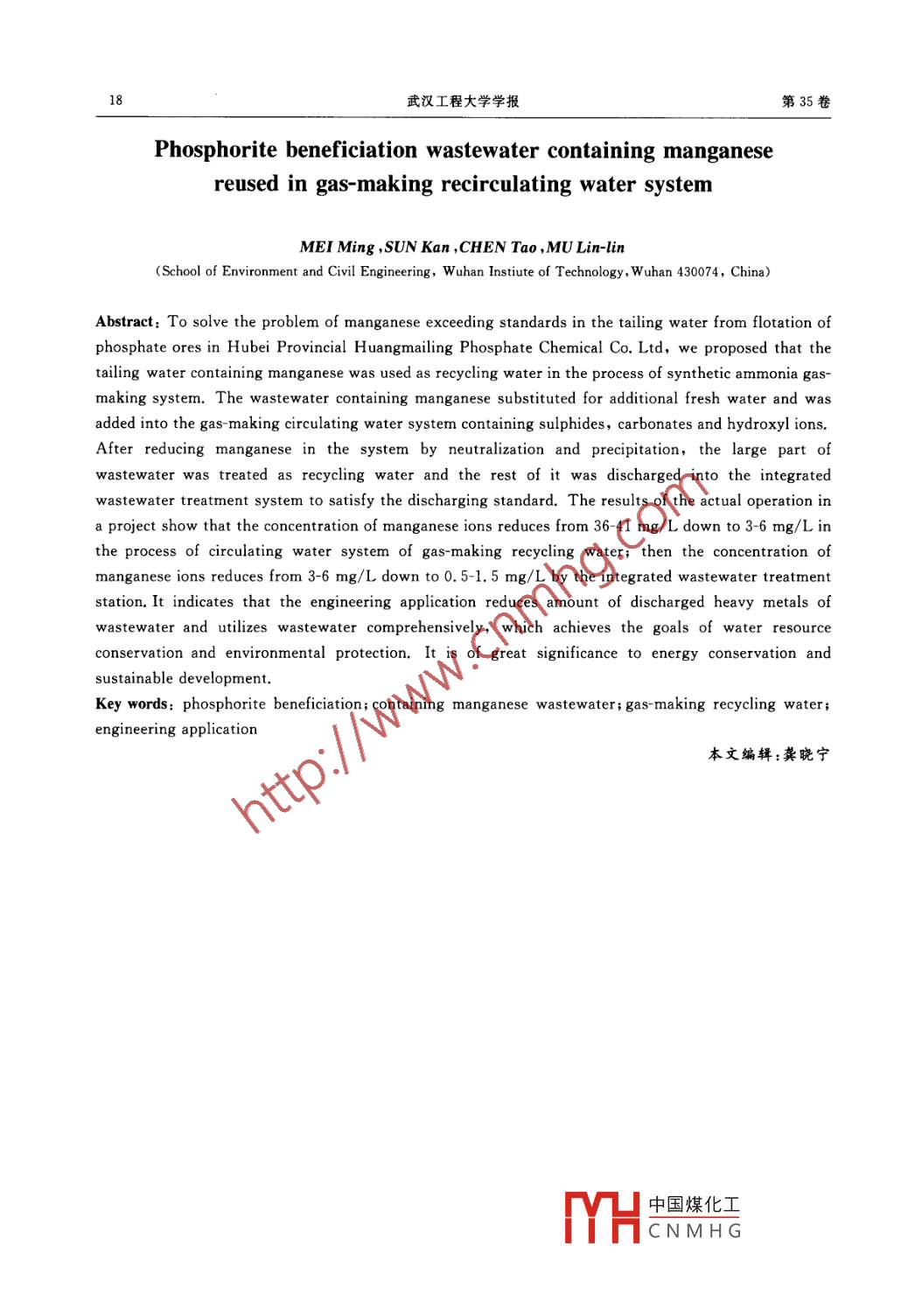 磷礦選礦含錳廢水在造氣循環(huán)水系統(tǒng)中的應用