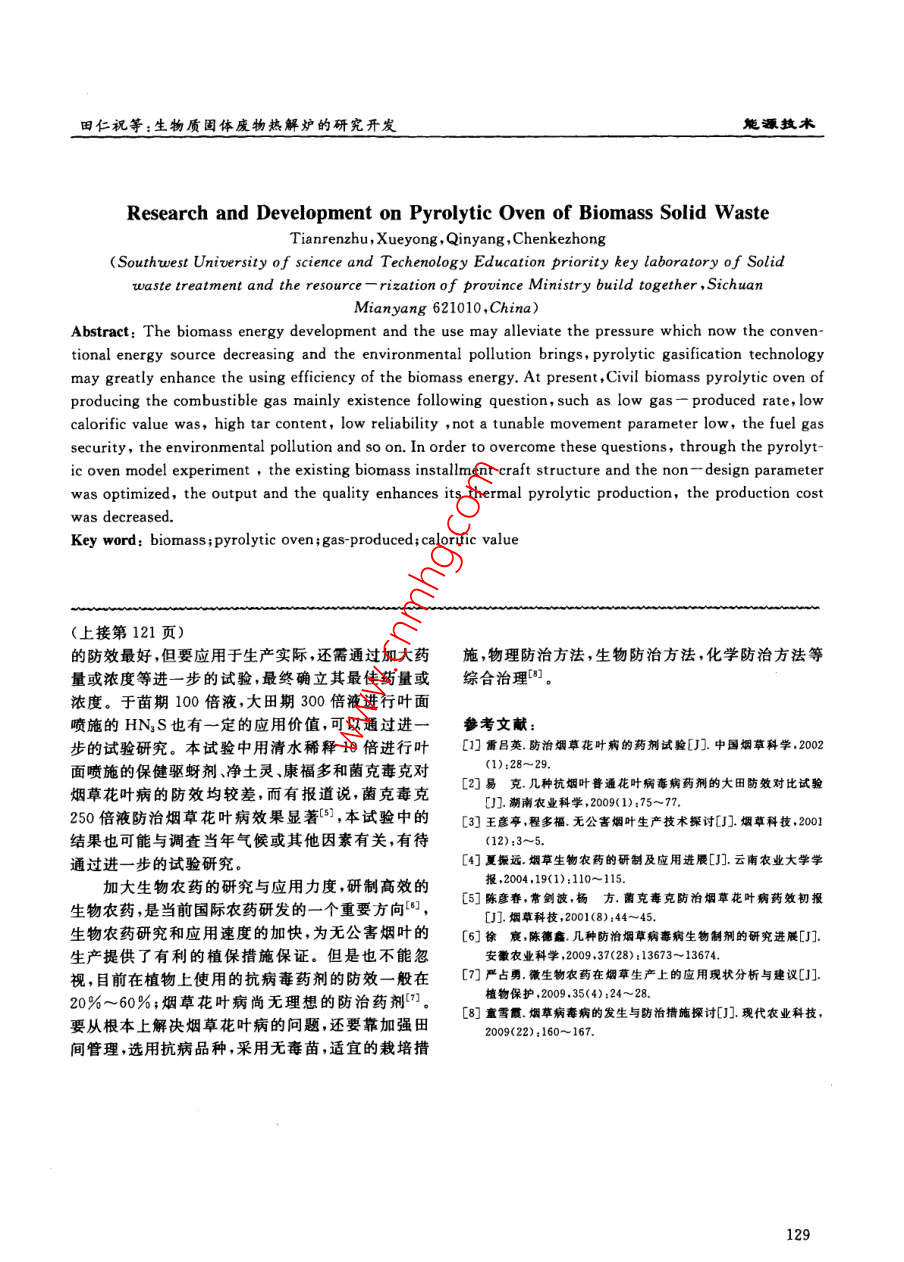 生物質(zhì)固體廢物熱解爐的研究開發(fā)