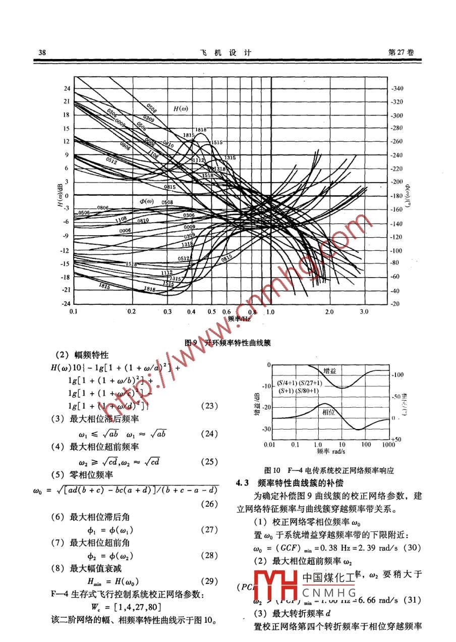 第27卷第3期飛機設(shè)計Vol. 27 No. 32007年6月AIRCRAFT DESIGNJun 2007文章編號: 73-459203003-090電傳系統(tǒng)設(shè)計研究邵榮士(沈陽飛機設(shè)計研究所,遼寧沈陽100035)摘要:研究了縱向電傳系統(tǒng)前向指令回路非線性校正、過載指令的設(shè)計和綜合、C '反饋回路的設(shè)計、調(diào)參規(guī)律的選取、校正網(wǎng)絡(luò)特征、閉環(huán)系統(tǒng)穩(wěn)定性、閉環(huán)系統(tǒng)相位補償以及放寬靜安定度補償方法等,并對伺服彈性回路和人-機耦合回路的綜合設(shè)計進行了研討。關(guān)鍵詞:非線性校正;指令模型;C .反饋;增益調(diào)參;系統(tǒng)校正;放寬靜安定補償;結(jié)構(gòu)陷波器;駕駛員誘發(fā)振蕩.中國分類號: V227*. 83文獻標識碼: AResearch of Fly-By-Wire Fight Control System DesignSHAO Rong- shi(Shenyang Aircraft Design & Research Institute , Shenyang 110035, China)Abstract: The correction of nonlinearity in forward command loop, design and synthesis of g com-mand, design of C* feedback loop, selection of gain scheduling law , characteristics of corrective net-work, stability and phase compensation of closed loop system , and compensation method for relaxationstatic stability were studied in this paper. And synthesis designs for aeroservoelastic loop and pilot- air-craft coupling loop were also mentioned.Key words: nonlinearity correction ; command model; C * feedback ; gain scheduling; system correc-tion; relaxation static stability compensation ; structural notch filter ; pilot induced oscillation可分別獨立地操縱;1指令回路(3)桿力或桿位移(腳蹬力或腳蹬位移)要適由駕駛桿的輸人到C'反饋綜合口的通道稱中,其中力感更重要;指令回路:它由中央操縱機構(gòu)的桿力-桿位移非(4)縱、橫、航向操縱力要匹配:桿在1/4線性特性、桿力或桿位移傳感器、過載指令梯度、行程時,縱/橫向操縱力比值為2:腳蹬力/橫向電配平、過載限制器及指令模型所組成"??v向操縱力比值為5~8;控制律方塊圖見圖1。(5)殲擊機縱向最大桿力合適值為8 ~ 101.1中央操縱機構(gòu)kg,壓桿為4~5 kg.最大腳蹬力為30 kg;縱向(1)推桿低頭,拉桿抬頭;左壓左傾,右壓單位中國煤化工g,桿位移梯度為右傾;左蹬左轉(zhuǎn),右蹬右轉(zhuǎn);12 mnYHCNMHG(2)駕駛員既可同時操縱升降舵和副翼,亦(6)桿力預(yù)載(啟動力)的合適值為0.5~0.8收穰日期: 2006 -06-07;修訂日期: 2007-05-2034飛機設(shè)計第27卷.kg,操縱桿力具有回中趨勢;速度: 1/7。(7)桿力到舵面操縱延時不應(yīng)超過人的反應(yīng)限幅+25°指令梯度配平過載限制器r圖機械預(yù)載濾波10L0-圓9四號6δ-0P至橫向e =0.3kgq=2.25kg至航向223零限幅器;b=4.5kgq.=4883kg/ m2零限幅器‘q.-9765kg/ m?q=14648kg/ m2f(4)變增益-6-四田0|過調(diào)防止開關(guān)(自動)| az30' 251B(S)限幅高通伺服器A(S)助力器a(52)20r@00。-+20.7(52)5+(52) S+20廠a<30'濾波00N-st1s圖1 YF - 16縱向控制律1.2非線性校正象限為桿力F,與桿位移X,的非線性對應(yīng)關(guān)系;第中央操縱機構(gòu)縱向桿力/桿位移成非線性關(guān)I象限為桿位移傳感器輸出電壓V:與X,的線性關(guān)系:中立附近梯度大,而在大位移狀態(tài)梯度小,系;第IV象限為所要求的校正后電壓Vz (即控制即較小桿力變化可獲得較大桿位移。駕駛桿的機電壓V。)與桿力的線性關(guān)系,由I,IV象限對應(yīng).械輸出必須轉(zhuǎn)為電信號方可為電傳系統(tǒng)所用,如所得第亞象限即為所求的非線性校正特性。采用桿位移傳感器,則需設(shè)計- -非線性校正特性,1.3指令模型以期滿足桿力對飛機過載的線性要求。非線性校在指令回路中大閉環(huán)綜合口前設(shè)置有一階慣正特性是采用直角坐標系旋轉(zhuǎn)變換求得的口l,該性環(huán)節(jié)的濾波器。由于高增益快反應(yīng)的電傳系統(tǒng)法不僅可以將一個非線性函數(shù)轉(zhuǎn)變?yōu)榫€性函數(shù),可以緊跟該濾波器的輸出,故稱其為電傳系統(tǒng)的還可用于任--非線性函數(shù)對另--類非線性函數(shù)的指令模型。它主要用于平緩飛行員的劇烈操縱。轉(zhuǎn)換。圖2示出了推桿情況的非線性校正,第I指令模型的轉(zhuǎn)折頻率一般設(shè)計在4~ 10之間,即該一階慣性環(huán)節(jié)的時間常數(shù)在0.1 ~0.25 s之間。F-4, YF-16,單軸模擬式、數(shù)字式的指令模型轉(zhuǎn)mm▲x,十9折頻率分別為6,4, 6, 5 rad/so .k =0.03592v/mm某機過分追求小幅值等效擬配指標(等效延時、擬配阻尼比等),與指令模型(w = 10)并聯(lián)126了比例環(huán)節(jié)(見圖3),且其增益是慣性環(huán)節(jié)的F3.75倍(k, = 1.5,后=0.4),一階慣性環(huán)節(jié)的M 33409361 70.8 4.8[b2中國煤化工. 3.25一MHCNMH G&-2中(V) .ny,wo,a圖2推桿非線性校正圖3某機指令模型方塊圖第3期邵榮士:電傳系統(tǒng)設(shè)計研究3:指令模型失去其濾波作用,導(dǎo)致“操縱過靈,難2.2 n, 濾波器以控制正常姿態(tài)著陸”,由于在大幅值急劇操縱法向加速度計的輸出在與俯仰速率陀螺信號時出現(xiàn)PIO(駕駛員誘發(fā)振蕩),造成墜機二等事混合前要通過-一個一階滯后濾波器(見圖4),該故[3]。濾波器主要用于消除n,傳感器非操縱信號噪聲,并抵制結(jié)構(gòu)模態(tài)信號通過法向加速度計耦合到電2過載指令 的設(shè)計與綜合[4]傳系統(tǒng)中來。研究表明,該濾波器的轉(zhuǎn)折頻率對2.1 C* 混合比改善系統(tǒng)的時域響應(yīng)及穩(wěn)定儲備都有重大影響。實現(xiàn)桿力指令飛機的法向過載, ny反饋是必從濾波的角度出發(fā)希望轉(zhuǎ