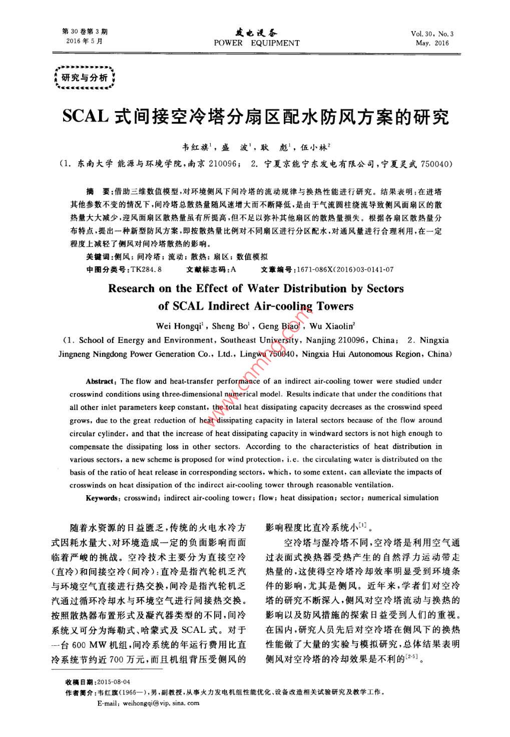 SCAL式間接空冷塔分扇區(qū)配水防風方案的研究 SCAL式間接空冷塔分扇區(qū)配水防風方案的研究