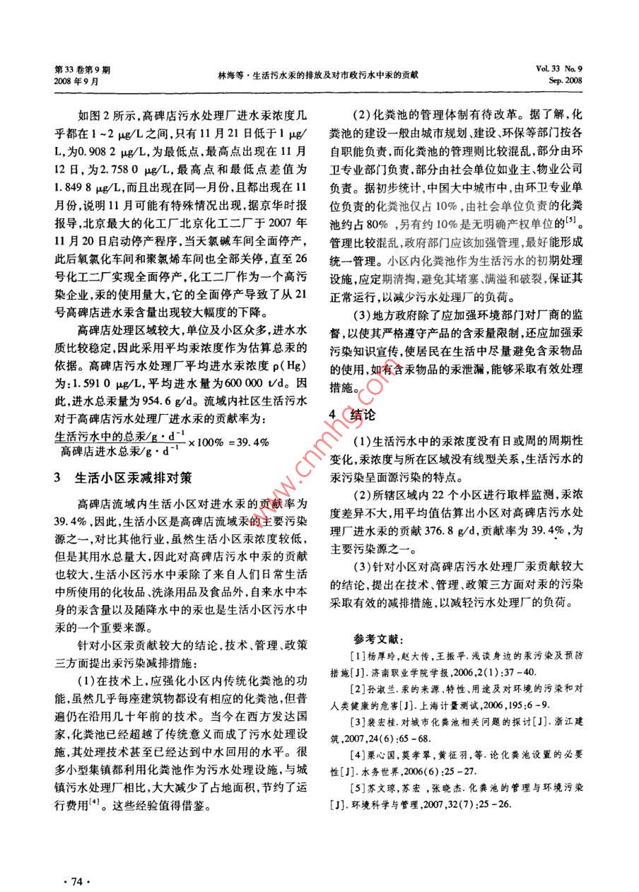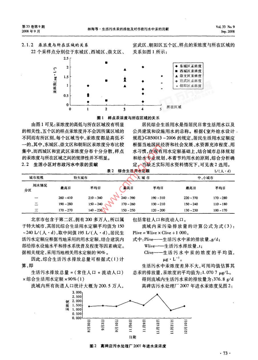 生活污水汞的排放及對市政污水中汞的貢獻(xiàn)
