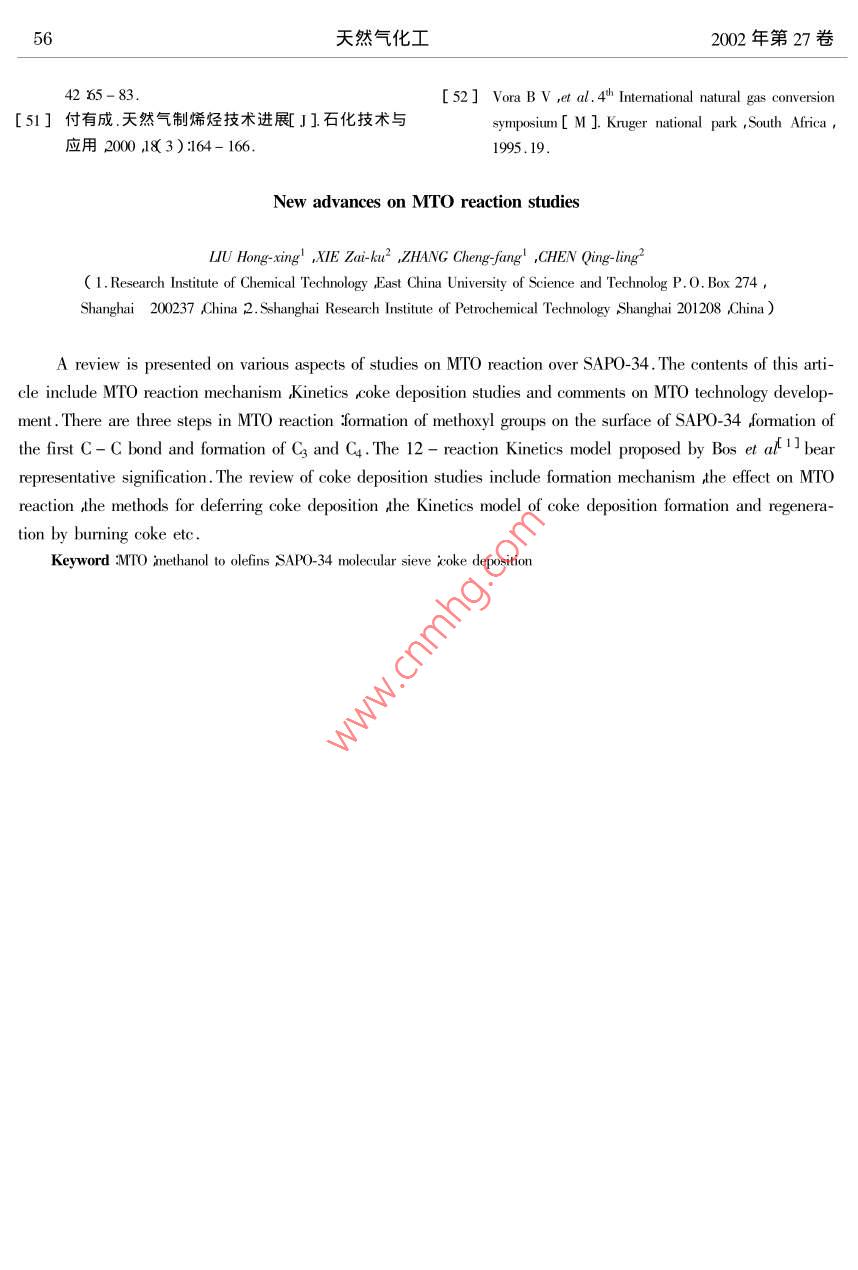 - 期刊名字:天然氣化工