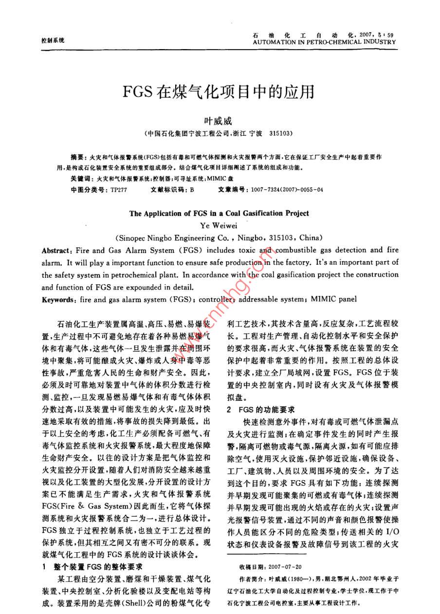 FGS在煤氣化項(xiàng)目中的應(yīng)用