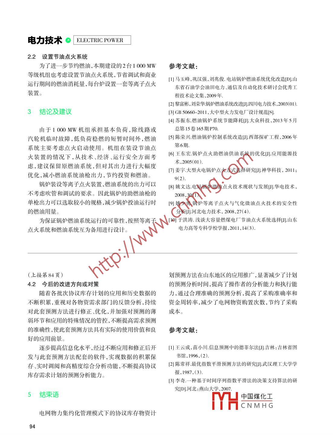 電力技術(shù)日[ ELECTRIC POWER點(diǎn)火助燃油系統(tǒng)優(yōu)化倪培林(江西大唐國(guó)際撫州發(fā)電有限責(zé)任公司,江西撫州344000)摘要:結(jié)合江西大唐撫州 工程煤種特性,優(yōu)化了燃油系統(tǒng)的出力,提高了機(jī)組投油助燃的經(jīng)濟(jì)性。從技術(shù)經(jīng)濟(jì)、運(yùn)行安全方面進(jìn)行分析,對(duì)本工程采用節(jié)油點(diǎn)火技術(shù)后是否保留燃油系統(tǒng)提出了意見(jiàn)。關(guān)鍵詞:助燃油;節(jié)油點(diǎn)火;系統(tǒng)優(yōu)化中圖分類(lèi)號(hào): TM77文獻(xiàn)標(biāo)志碼: B系統(tǒng),綜合考慮來(lái)源可靠、價(jià)格適中、采購(gòu)方便、系統(tǒng)引言簡(jiǎn)單等幾方面因素,江西大唐撫州電廠(chǎng)新建工程選用0號(hào)輕柴油。國(guó)內(nèi)燃煤電廠(chǎng)均大部分采用燃油作為鍋爐點(diǎn)按照GB252-2000的標(biāo)準(zhǔn),0號(hào)輕柴油的規(guī)范如火和鍋爐穩(wěn)燃燃料,以往工程考慮到燃油的價(jià)格因表1輕柴油規(guī)范素,一般采用重油作為鍋爐啟動(dòng)和穩(wěn)燃燃料,輕油頁(yè)目單位數(shù)據(jù)僅用于點(diǎn)燃重油。由于重油點(diǎn)火助燃系統(tǒng)比較復(fù)水份雜,而且重油供不應(yīng)求,供應(yīng)渠道沒(méi)有保障,而且購(gòu)灰份%≤0.01硫份9≤0.5!買(mǎi)不方便,近年來(lái)大部分電廠(chǎng)都采用單一品種的燃機(jī)械雜質(zhì)無(wú)油,直接用輕油點(diǎn)燃煤粉和助燃,點(diǎn)火和助燃油都實(shí)際膠質(zhì)mg/L>45采用0號(hào)輕柴油。閉口閃點(diǎn)。≥55近年來(lái)隨著等離子點(diǎn)火技術(shù)和微油點(diǎn)火技術(shù)的凝≤0發(fā)展和完善,不少新建火電機(jī)組在鍋爐上裝設(shè)了節(jié)油運(yùn)動(dòng)粘度(20°C時(shí))mm2/s3.0~ 8.0恩氏粘度(20°C時(shí))°1.20~ 1.67點(diǎn)火系統(tǒng),在機(jī)組調(diào)試階段節(jié)省了非??捎^的燃油數(shù)10%蒸發(fā)物殘?zhí)肌?.3量。國(guó)內(nèi)眾多電廠(chǎng)經(jīng)過(guò)幾年來(lái)的摸索實(shí)踐,等離子mgKOH/L20PC比重kg/m'820~ 850點(diǎn)火裝置和微油點(diǎn)火系統(tǒng)已可以用在鍋爐低負(fù)荷低位發(fā)熱量k]/kg42 600時(shí)助燃。江西大唐撫州電廠(chǎng)新建工程,本期建設(shè)的2臺(tái)1000 MW等級(jí)機(jī)組也考慮設(shè)置節(jié)油點(diǎn)火系統(tǒng),節(jié)2主要節(jié)油措施省調(diào)試和商業(yè)運(yùn)行期間的燃油消耗量。從安全運(yùn)行出發(fā),本工程在裝設(shè)節(jié)油點(diǎn)火裝置的為了節(jié)約價(jià)格昂貴的點(diǎn)火助燃油,降低電廠(chǎng)運(yùn)行基礎(chǔ)上,適當(dāng)保留了鍋爐燃油系統(tǒng),但對(duì)其容量和數(shù)成本,提高經(jīng)濟(jì)效益,本工程從設(shè)計(jì)上考慮節(jié)油措施,量進(jìn)行了大幅度優(yōu)化。為電廠(chǎng)的節(jié)油運(yùn)行提供條件。2.1選擇適 當(dāng)?shù)挠蜆尦隽?燃油種類(lèi)鍋爐燃燒器布置方式的不同,常規(guī)油槍的數(shù)量也有所不同。目前國(guó)內(nèi)幾大鍋爐廠(chǎng)1 000 MW等級(jí)鍋爐點(diǎn)火助燃油系統(tǒng)是燃煤火力發(fā)電廠(chǎng)一的重要輔助主要以前后墻對(duì)沖燃燒和八角切圓燃燒方式為主。| 中國(guó)煤化工作者簡(jiǎn)介:YHCNMHG倪培林(1969-),男,工程師,從事火電廠(chǎng)機(jī)爐設(shè)備管理工作。92江西電力.2015JIANGXI ELECTRIC POWER撫州工程以燃燒器前后墻對(duì)沖布置為例,鍋爐共3層前后墻對(duì)沖燃燒鍋爐,鍋爐燃燒器層數(shù)是3層,最底煤粉燃燒器,每層煤粉燃燒器的數(shù)量為16個(gè),前墻層的一側(cè)墻裝油槍,另一側(cè)墻裝節(jié)油點(diǎn)火系統(tǒng),中與后墻各8個(gè),每個(gè)燃燒器設(shè)置- -只油槍,共48只間層和最上層的前后墻都裝設(shè)油槍。在確定油槍油槍。按常規(guī)單只油槍出力1.35 th,總輸人熱量為出力時(shí),按照穩(wěn)燃時(shí)投人最下一層油槍,穩(wěn)燃油槍鍋爐輸人熱量的32%BMCR;如果單只油槍出力總出力按不小于5%鍋爐BMCR工況下輸人熱量的0.65th,總輸入熱量為鍋爐輸人熱量的15.6%BM-原則考慮,保證鍋爐穩(wěn)燃時(shí)油槍有足夠的出力。CR。在點(diǎn)火時(shí)候投入2~ 3層32 ~ 48只油槍,按常規(guī)如節(jié)油點(diǎn)火系統(tǒng)故障,則啟動(dòng)助燃期間3層油槍需單只油槍出力1.35 th,總輸人熱量為鍋爐輸人熱量全部投人,總出力是穩(wěn)燃油槍出力的2.5倍,最大的21.5% ~ 32%B-MCR;啟動(dòng)助燃時(shí)投人32只油槍?zhuān)梢赃_(dá)到12.5%以上鍋爐BMCR工況下輸人熱量,總輸人熱量為鍋爐輸人熱量的21.5% BMCR;低負(fù)荷滿(mǎn) 足爐膛升溫要求。本工程所有油槍均采用同一助燃時(shí)投入一層16只油槍,總輸人熱量為鍋爐輸入規(guī)格考慮,零部件具有互換性,有利于減少備品熱量的11% BMCR ;在燃燒比較穩(wěn)定的時(shí)候也可投人備件。其中-側(cè)墻8只油槍。每臺(tái)鍋爐設(shè)共40只油槍(另外每臺(tái)爐已設(shè)8只按照《火力發(fā)電廠(chǎng)設(shè)計(jì)規(guī)程》(DL 5000-2000)的節(jié)油點(diǎn)火裝置),油槍的出力只考慮鍋爐啟動(dòng)助燃要求,燃用煙煤的鍋爐,啟動(dòng)助燃燃油量宜為鍋爐最以及低負(fù)荷穩(wěn)燃需要,單支油槍出力按650kg/h設(shè)大連續(xù)蒸發(fā)量工況下輸人熱量的10%,低負(fù)荷穩(wěn)燃油計(jì),啟動(dòng)助燃期間投入2層前后墻共32只油槍時(shí),量宜為鍋爐最大連續(xù)蒸