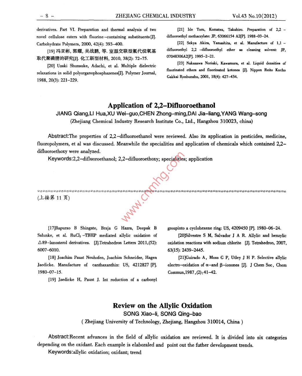 - 期刊名字:浙江化工