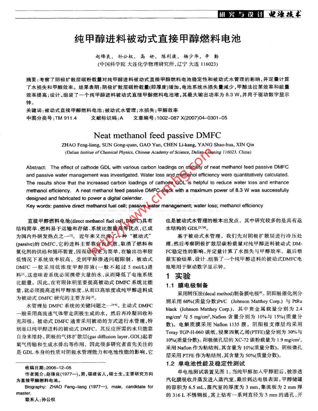 純甲醇進(jìn)料被動(dòng)式直接甲醇燃料電池