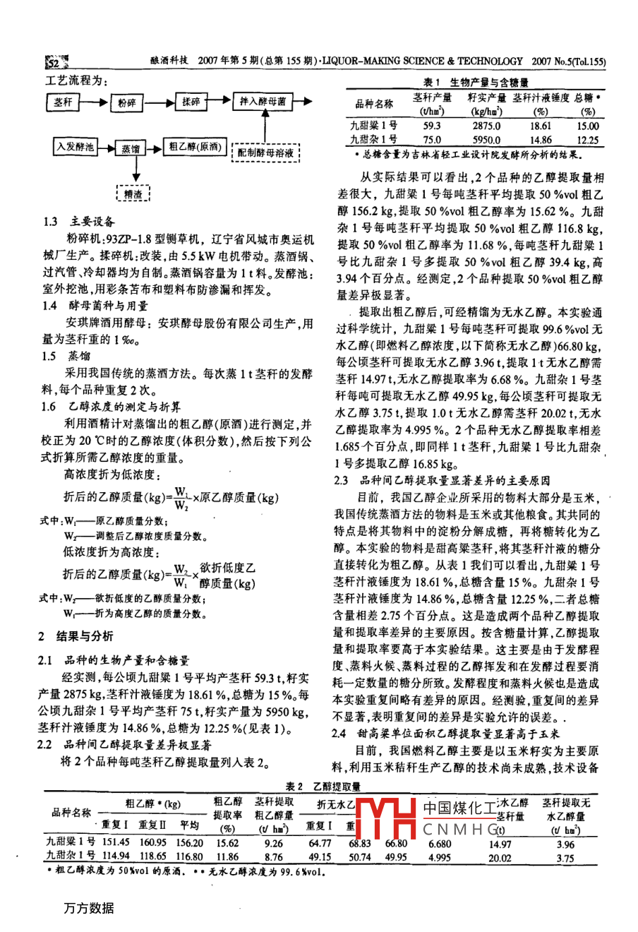 利用甜高粱莖稈提取乙醇的實(shí)驗(yàn)報(bào)告(第Ⅰ報(bào))——不同品種乙醇提取量的實(shí)驗(yàn)