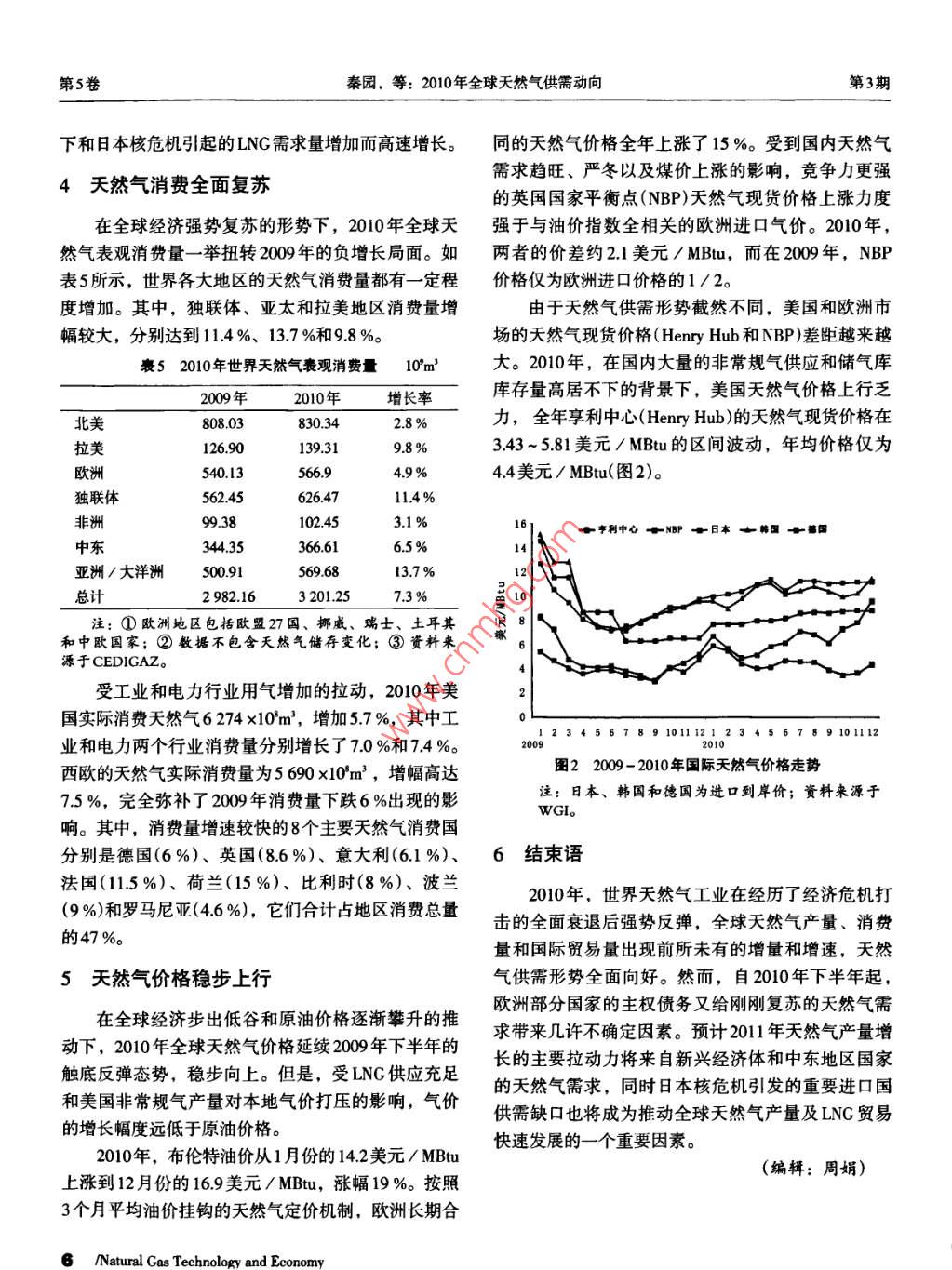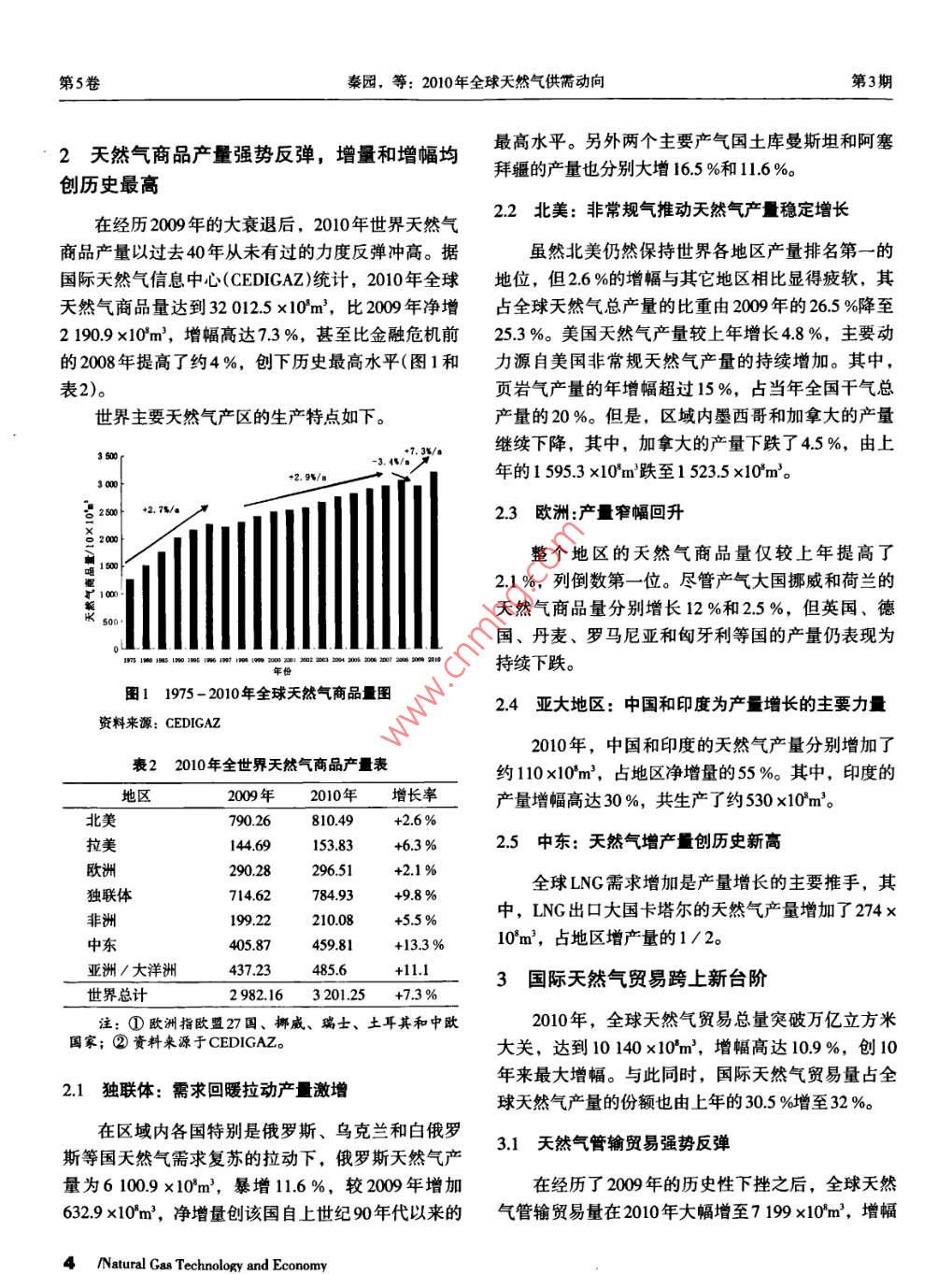 2010年全球天然氣供需動(dòng)向