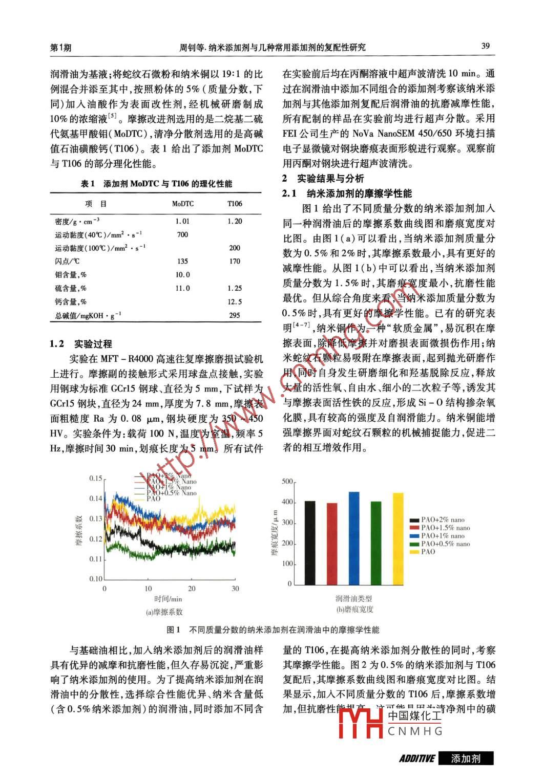 納米添加劑與幾種常用添加劑的復配性研究