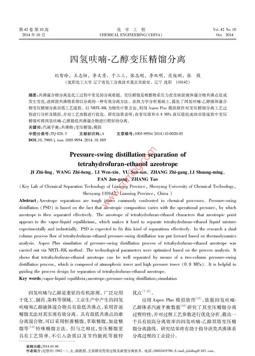 - 作者單位:沈陽化工大學(xué)遼寧省化工分離技術(shù)重點實驗室