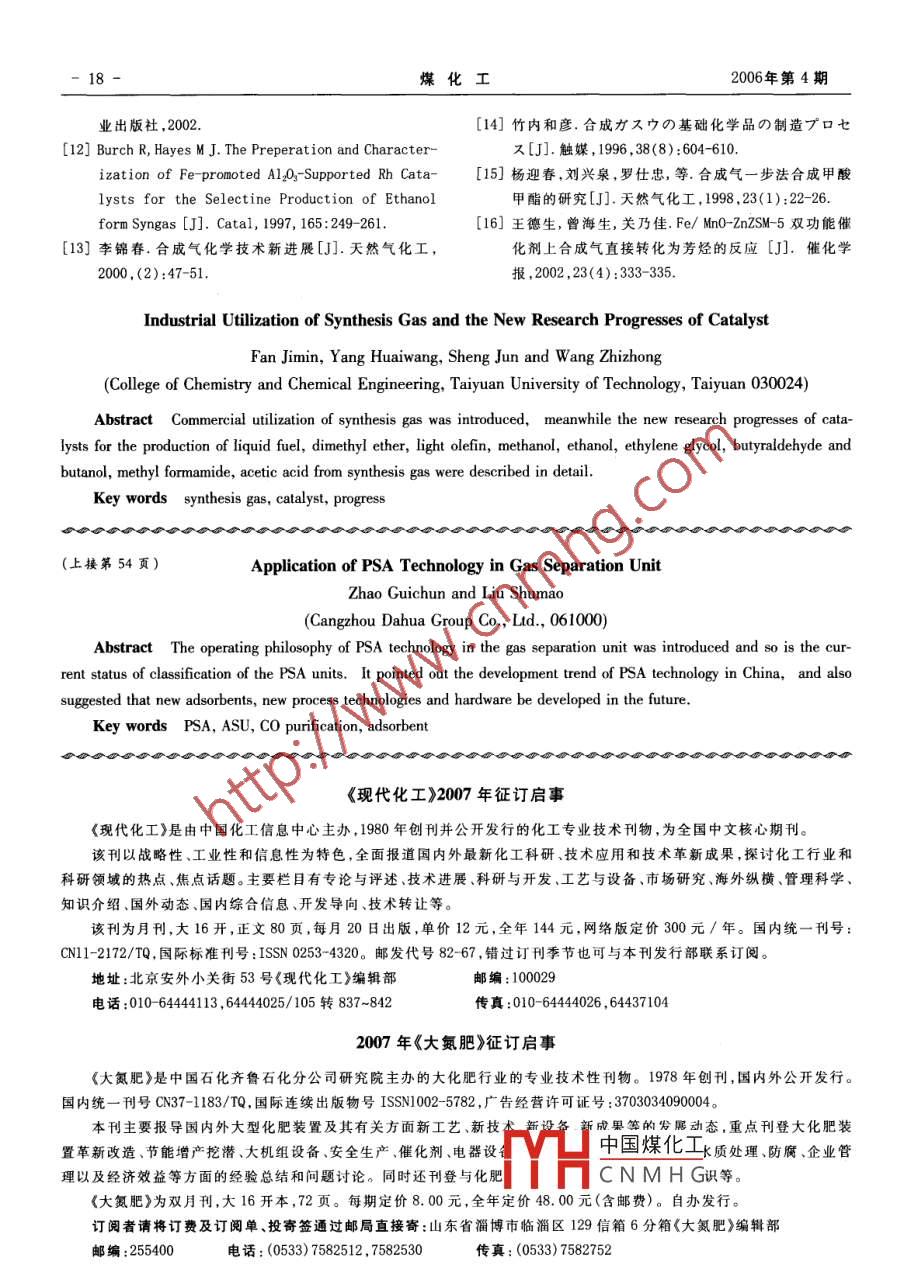 - 期刊名字:煤化工