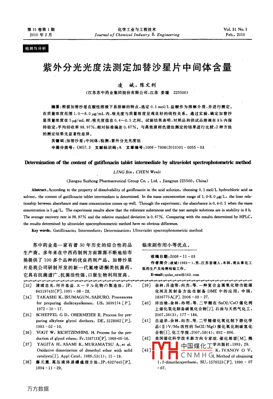 - 期刊名字:化學(xué)工業(yè)與工程技術(shù)