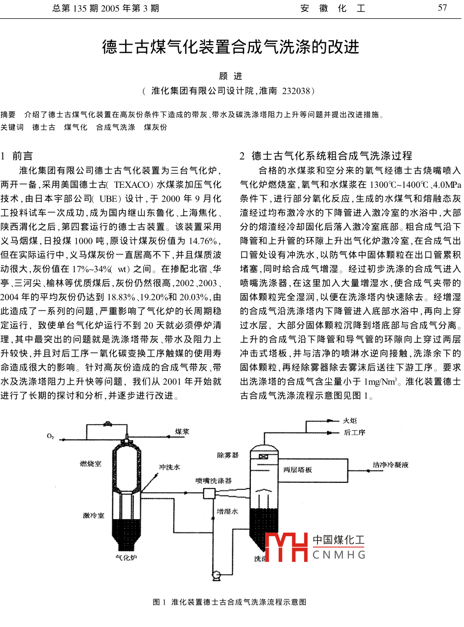 德士古煤氣化裝置合成氣洗滌的改進(jìn)
