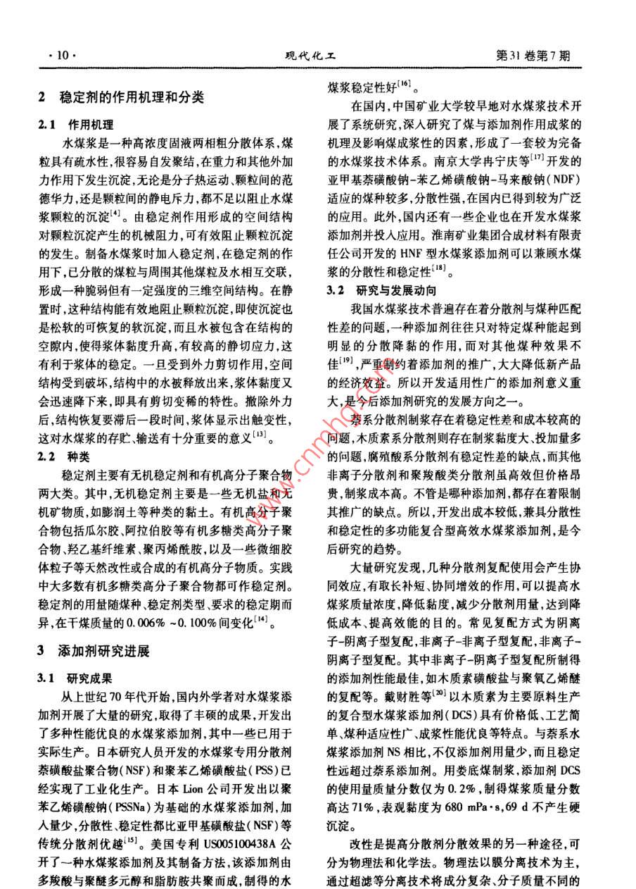 水煤漿添加劑研究及發(fā)展動(dòng)向