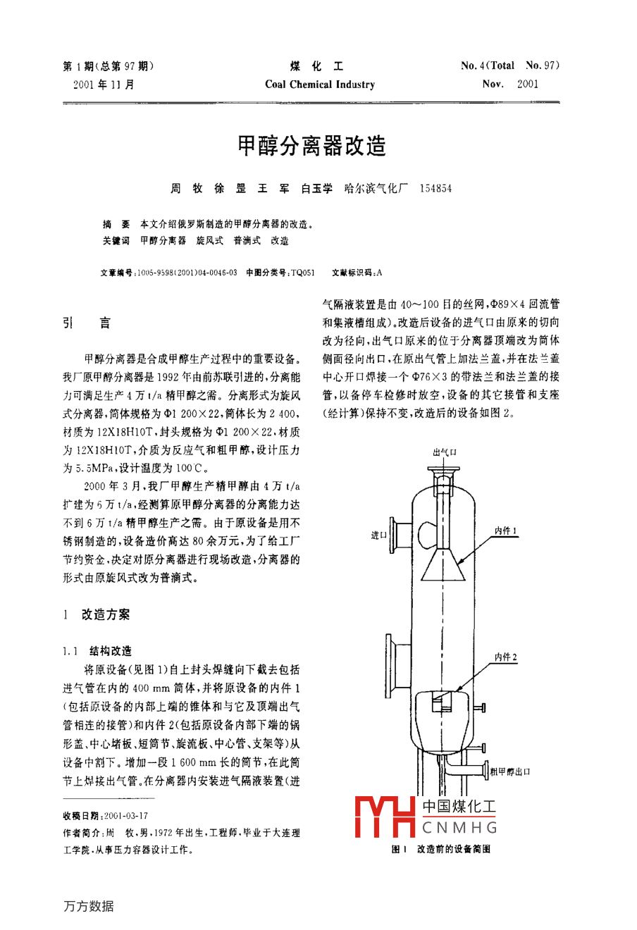 甲醇分離器改造