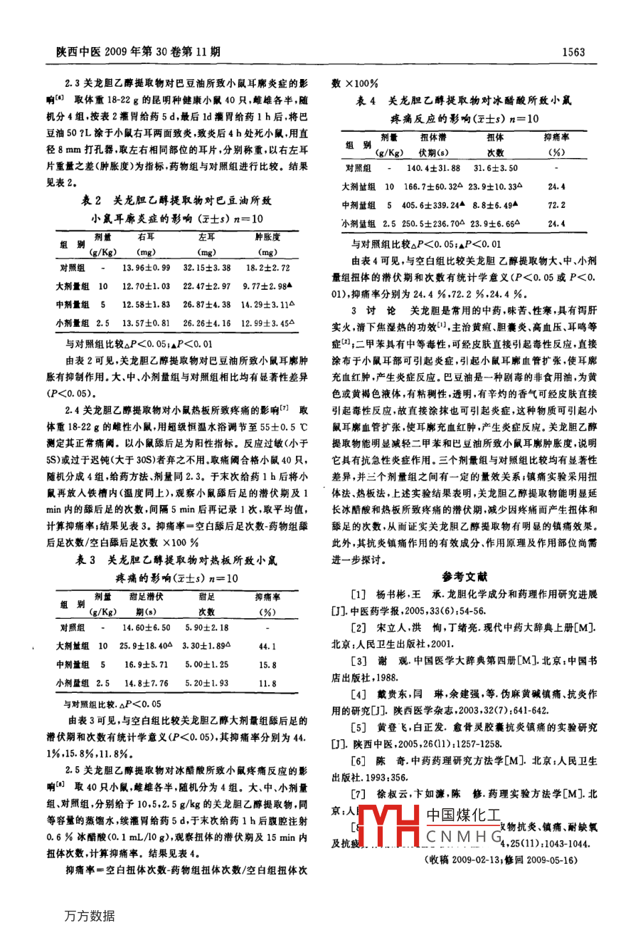 關(guān)龍膽乙醇提取物抗炎鎮(zhèn)痛作用的研究