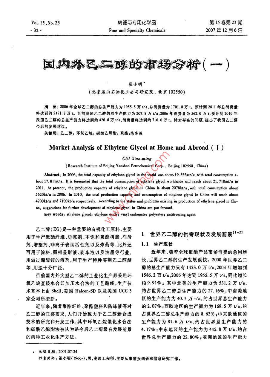 國(guó)內(nèi)外乙二醇的市場(chǎng)分析(一)