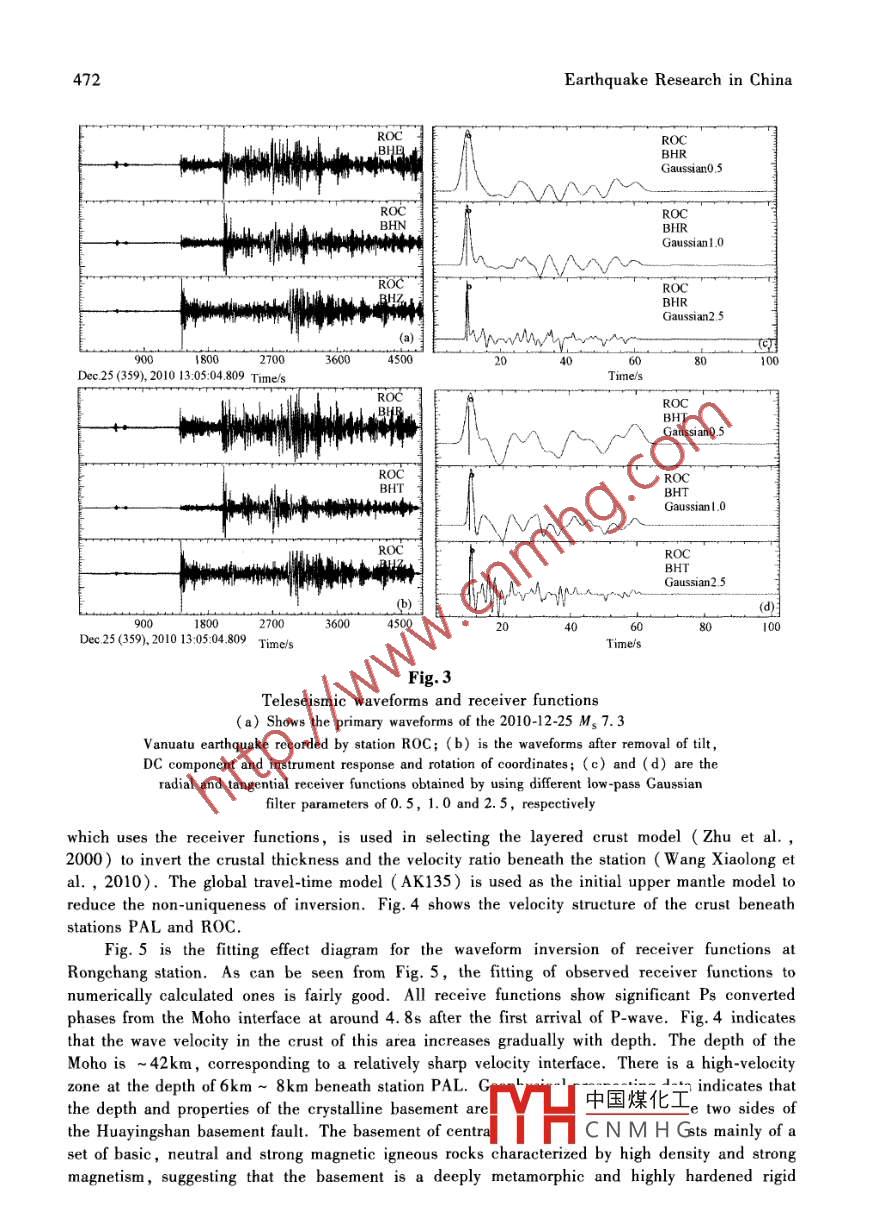 Earthquake Research in ChinaVolume 26, Number4, 2012Fine Velocity Structure andRelocation of the 2010 M[ 5. 1Earthquake Sequence in theRongchang Gas Field'Wang Xiaolong'), Ma Shengli?), Lei Xingln2.3), Guo Xin”, Wang Qiang’,Yu Guozheng',Gou Xianbin',Kuwahara Yasuto') , Imanishi Kazutoshi) ,and Jiang Xiadong1) Earthquake Administration of Chongqing Municipality , Chongqing 401 147, China2) Stale Key Laboratory of Earthquake Dynamics, Institute of Geology, CEA, Beijing 100029, China3) Geological Survey of Japan, Tsukuba 305 ~ 8567, Japan4) Hohai University, Changzhou, Changzhou 213022, ChinaBased on data collected from a temporal seismic network , and in addition to the data fromsome nearby permanent stations, we investigate the velocity structure and seismicity in theRongchang gas field, where significant injection-induced seismicity has been identified.First, we use receiver functions from distant earthquakes to invert detailed 1-D velocitystructures beneath typical stations. Then, we use the double-difference hypocenter locationmethod to re-locate earthquakes of the 2010 M[5. 1 earthquake sequence that occurred inthe region. The re-located hypocenters show that the 2010 M,5.1 earthquake sequence wasdistributed in a small area surrounding major injection wells and clustered mostly alongpre-existing faults. M ajor earthquakes show a focal depth less than 5km with a dominantdepth of ~2km, a depth of major reservoirs and injection wells. We thus conclude thatthe 2010 M, 5.1 earthquake sequence might have been induced by the deep well injectionof unwanted water at a depth ~ 3km in the Rongchang gas field.Key words: Inducedearthquake;Receiverfunction; Double difference location ;RongchangINTRODUCTIONThe Rongchang gas field is located at the southern edge of Sichuan basin in the border area' Received on March 15, 2011; revised on April 21, 2012. This reegoroh“Program of China Earthquake Administration ( XH12038Y), the中國煤化工lquake Dynamic(LED2008B04),and Science and Technology Program of ChongdMHCNMH Gant No. CSTC,2011AC0149),Research on the New Patterm and Key Technique。Lraliyuant uicigoncy Decision inSouthwest China ( 201108013).468Earthquake Research in Chinabetween Sichuan Province and Chongqing Municipality. Tectonically, it is located in thesouthwestem range of the Huaying Mountains on the eastern Sichuan fault-fold zone, being a partof the boundary belt between the two tectonic units, i. e. the central Sichuan dome structure andthe eastern Sichuan fault-fold zone (Fig. 1). The strata in the central Sichuan dome structure isnear-horizontal,with weak deformation, characterized by nose-like or short and domelikeanticlines. The eastern Sichuan fault-fold zone has experienced intensive deformation ,characterized by the elongated narrow anticlines and wide gentle synclines spreading parallel androughly equally-spaced, being typical Jura-type and comb-like folds. The anticlines form themountains and the synclines form the valleys; surface faults and anticline structures are aattendant phenomenon, and most faults show offset crossing of the axes or steep flanks of theanticlines ( Bureau of Geology and Mineral Resources of Sichuan Province, 1991 ). The majorfaults of this region are the Huayingshan basement faults, which strike N40° ~ 45°E on thewhole, dipping SE with dip angles 30° ~ 70°. This fault zone starts at the north of Dazhou in thenorth, running southwestward through Dazhu, Linshui, Hechuan, Tongliang and Rongchang tothe south of Yibin, with a total length of about 460km , being the largest fault zone in the Sichuanbasin. The fault zone is characterized by deep incision, multi-episode activity, and also withpossible late Quatemary activity. Attendant secondary faults developed in the overburden of theHuayingshan basement fault are located mainly at the axes or steep flanks of the anticlines , shownas a series of parallel faults with lengths from a few to tens of kilometers , resulting in a number ofen- echelon struetures. These faults have played a key role in controlling the earthquake activity ofthis region (Ding Renjie, et al.,2004).At the end of the 1980s, the Rongchang gas field started to inject waste water producedduring gas exploitation into underground through several abandoned wells 2 ~ 3km deep.Meanwhile, seismicity increased significantly. However, there were no historical earthquakes ofM≥5.0 recorded in this region, and the seismicity level was very low before the water injection.Since then, the water. injection induced seismicity in this region has been the concern of manyresearchers. Cheng Shi et al. ( 1992) made a field investigation and found that the seismicity inthe Rongchang area is related, to a certain extent, to the oil wells nearby. Ding Renjie et al.( 2004) made a preliminary analysis on the water injection-induced seismicity in Rongchang. In2006, the seismicity in this area was enhanced again, and studies found that it also had a certainrelationship to the oil wells nearby ( Huang Shiyuan et al. , 2006). These studies have enrichedour knowledge about the water-injection induced seismicity in the Rongchang area. Lei et al.( 2008) made a detailed study on the characteristics of seismicity of the Rongchang area before2006 and its relationship with water injection using statistical analysis methods, such as theepisodic type aftershock sequence ( ETAS) model. They revealed the temporal evolution processof seismicity of the region in the past 30 years, established the methods to distinguish water-injection induced earthquakes and common tectonic earthquakes based on the ETAS model andother statistical methods, and discussed the triggering mechanism of water injection and therelationship between the induced earthquakes and the regional geological structures.In the Rongchang gas field area, there have been more than 30 , 000 earthquakes observedduring the period from 1988 through 2006 including two earthquakes with M≥5.0 and 14 withM≥4.0 (Lei