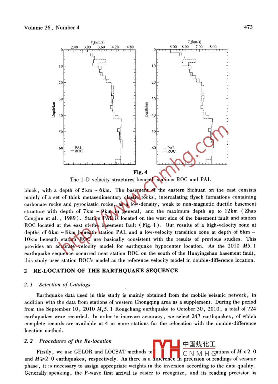 Fine Velocity Structure and Relocation of the 2010 gL 5. 1 Earthquake Sequence in the Rongchang Gas